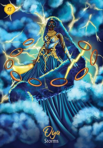 “Nuo tos akimirkos, kai gavau šventą užduotį sukurti šią kaladę, šie stebuklingi žmonės nepaliko manęs ramybėje. Esu kilusi iš intuityviųjų ir gydytojų kartų, todėl dieviškasis kanalizavimas man nėra naujiena. Tačiau šie orakulų sergėtojai buvo atkaklūs! Jie “sapnavo mane”, persekiojo ir vedė mane per šį bendrakūrimą. Nors afrikietiškas dvasingumas yra labai platus, dauguma praktikų turi bendrus pagrindinius tikėjimus, įskaitant: protėvių pagarbą, pagarbą vyresniesiems ir bendruomenei, pagarbą gamtos reiškiniams ir galią transformuoti kliūtis. Ši kaladė yra ištikima mūsų šventoms tiesoms ir paslaptims, perduodamoms per žodinę tradiciją. Ši kaladė padės jums kaip pranašavimo, gydymo, prabudimo ir asmeninio tobulėjimo įrankis. Pakilkite. Atėjo jūsų laikas.