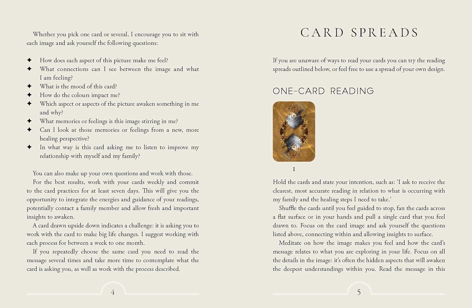Šis kortų rinkinys padės jums priimti teigiamus savo protėvių aspektus, kurie skatina jus eiti į priekį, tuo pačiu padėdamas jums atpažinti ir atsikratyti to, kas jus riboja. Svarbi gydymo dalis yra pažinti save ir sukurti didesnį gyvenimo vientisumą, todėl leiskite šiam orakului nuvesti jus į naują vidinės harmonijos lygį.