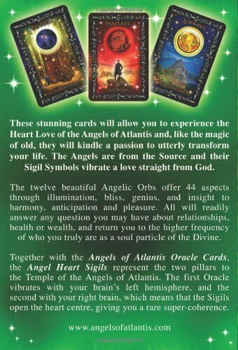 Įkvėptos ir vedamos 12 Atlantidos arkangelų, šios kolekcijos kortos pateikia jų širdies sigilų orakulą. Gražiai apipavidalintos ir į dėžutę įdėtos kortos su instrukcijų knygele gali suteikti tvaraus džiaugsmo ir geros savijautos jausmą net ir ištraukus vos vieną ar dvi kortas. Sigilos – tai antspaudai, kurie, kaip ir pasakiškojo Grimoarono talismanas, sukelia didžiulę magiją. Šios širdies sigilų meditacijos, papildančios Atlantidos angelų orakulo kortų rinkinį ir jį papildančios, gali būti naudojamos atskirai arba kartu su kitu rinkiniu. Širdies ženklų kortos šlovina meilės galią ir angelų grožio bei malonės paliesto gyvenimo pilnatvę. Tiems, kurie ieško kažko daugiau savo dvasinėje patirtyje, patiks šios kortos ir galimybė užmegzti ryšį su senovės Atlantidos karalyste.