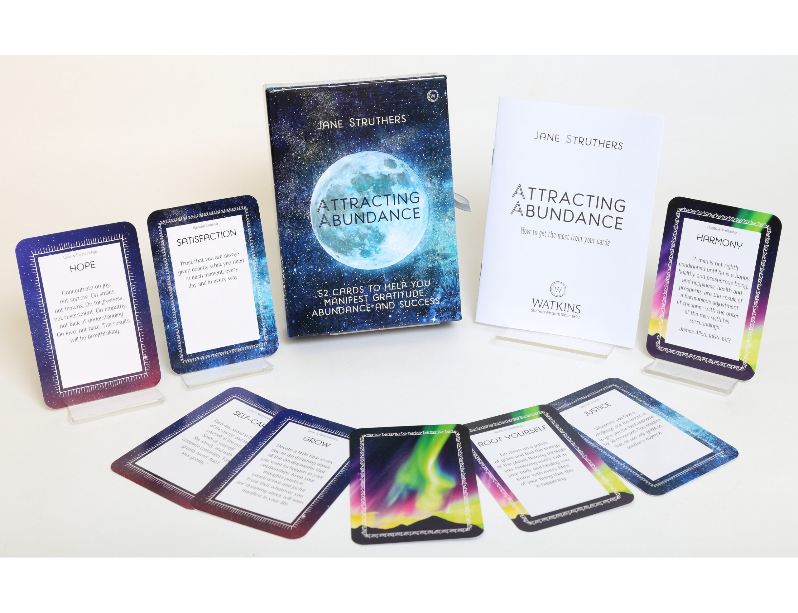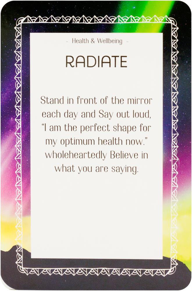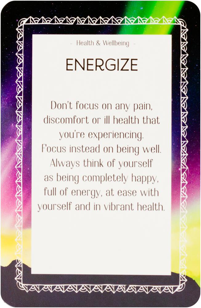 Visata gyva stipria, teigiama ir mylinčia energija – energija, kuri gali padėti įgyvendinti viską, ko trokštate savo gyvenime. Ši gražiai suprojektuota 52 meditacijos kortų kaladė suteikia praktinės išminties, padedančios panaudoti šią visatos galią. Kortos suskirstytos į keturias temas, kurių kiekviena orientuota į gyvenimo sritį – Meilę ir santykius; Karjerą ir klestėjimą; Kūrybiškumą; ir dvasinį augimą. Kiekvienoje srityje yra įkvepianti iliustracija, įkvėpta dangaus ir tinkama šiai temai. Kitoje pusėje rasite raktinį žodį, padėsiantį sutelkti dėmesį į kiekvieną kortą, kartu su vizualizacija, meditacija, pratimu, technika ar įkvepiančia citata. Turėdama daugybę įkvepiančių praktikų, ši kaladė bus būtinas palydovas kiekvienam, ieškančiam gausos savo gyvenime.
