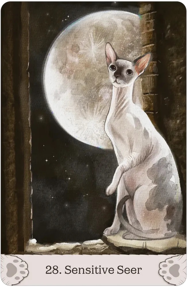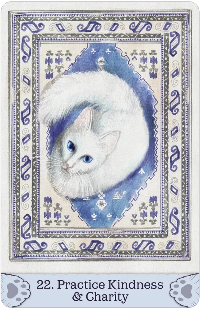 Šią žavingą orakulų kaladę pasirinkote todėl, kad viena ar kelios iš šių mistinių kačių pasirinko jus kaip savo žmogiškąjį palydovą. Kiekviena iš jų atneša savo natūralią magiją, kad sustiprintų jūsų psichinius gebėjimus. Jų energija suteikia jums apsaugą, paguodą ir paramą. Kiekviena katė pateikia žavingą istoriją ir įžvalgią žinią, kuri padės jums rasti atsakymus, kurių ieškote. Rinkinyje yra 45 kortos ir 104 puslapių iliustruota instrukcijų knygelė.