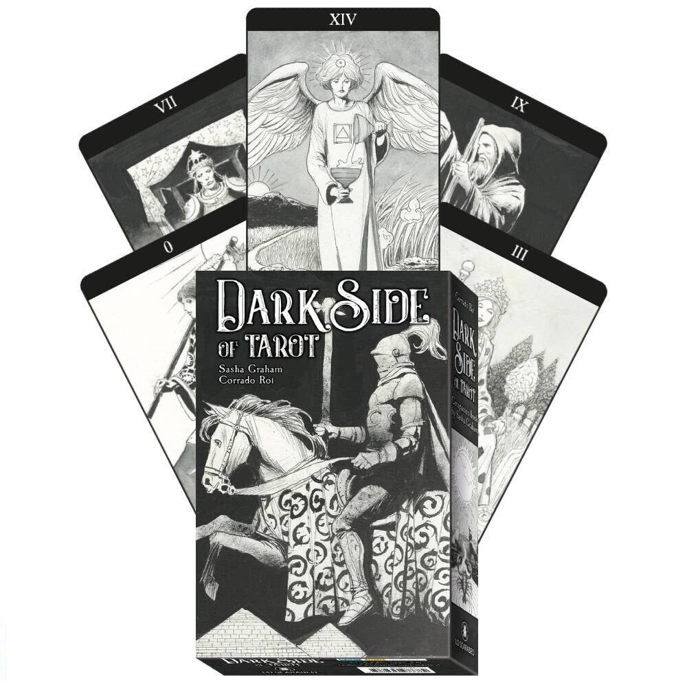 Sveiki atvykę į tamsiąją taro kortų pusę, kur meistriškos Corrado Roi iliustracijos ir bestselerių autoriaus Sasha Graham išmintis atskleidžia paslaptis, slypinčias kortų šešėliuose – ir tavyje. Roi, žinomas dėl perkamiausio Taro „Murder of Crows Tarot“, pasitelkia stulbinančią juodą ir baltą spalvą, kad įkvėptų transformuojančius skaitinius, kurie atskleidžia atsakymus, kurių jūs net nežinojote, kad jums jų reikia. Šis vienspalvio didingumo denis parodo, kaip pakeisti perspektyvas ir išmokti gyventi su savo tamsa.