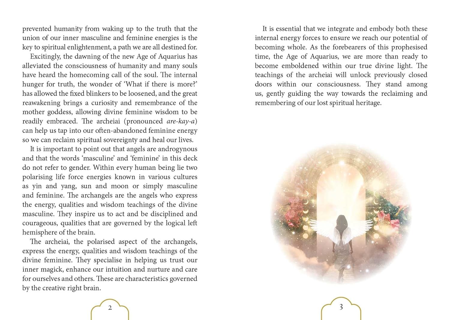 Angelai gali reikšti save kaip vyrai ar moterys, tiesiog įkūnijdami vyriškąją ar moteriškąją energiją. Šie „nauji“ angelai vadinami Archeiai, moteriškas terminas, reiškiantis arkangelus, nes jie yra angelų spindulių moteriškųjų aspektų išminties saugotojai. Jie žengia į priekį, nes mūsų globali sąmonė plečiasi ir pasaulis yra jiems pasirengęs. Jie visada buvo šalia, bet mūsų patriarchalinė praeitis trukdė mums su jais rezonuoti. Angelai gali padėti daugeliu praktinių būdų, pavyzdžiui, suteikdami psichinę apsaugą, perduodami žinutes, kurios gali padėti jums tobulėti gyvenime, padėdami jums susirasti žmones, kurie gali padėti jums žengti į priekį gyvenime, padėdami jums atverti širdį ir atleisti kitiems, bei darydami stebuklus jūsų aukščiausiam gėriui.