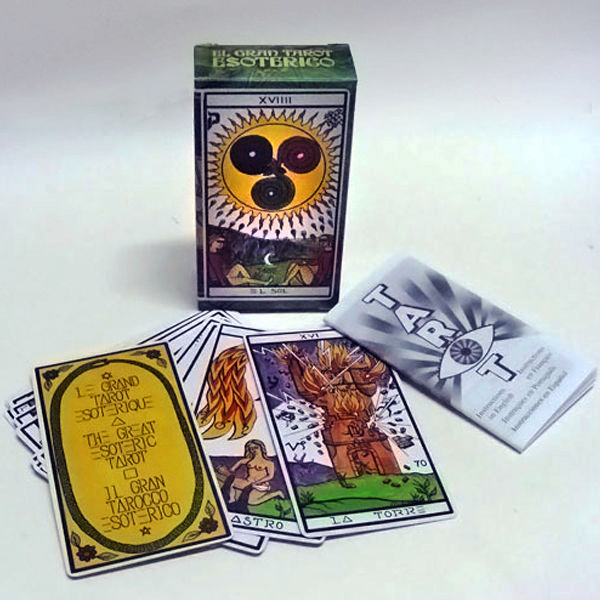 El Gran Esoterico taro kortos. Ryškių spalvų standartinio Tarot of Marseilles dizaino kortos, patobulintos menininkės Luis Pena Longa prisilietimo. Didžiojo arkano kortos yra sunumeruotos romėniškais skaitmenimis ir turi ispaniškus pavadinimus (išskyrus Mirties kortą). Astrologiniai simboliai ir Hebrajų raidės buvo priskirti prie Didžiųjų ir Teismo kortų. Mažieji Arkanai vietoj iliustracijų yra sunumeruoti. Kortų eiles galima atpažinti pagal numerius. Kiekviena eilė turi tam tikrą temą: lazdos (ugnis ir gyvūnai), taurės (gėlės, paukščiai ir drugeliai), kardai (vanduo ir jūros gyvybė) ir monetos (žemė ir augalai).