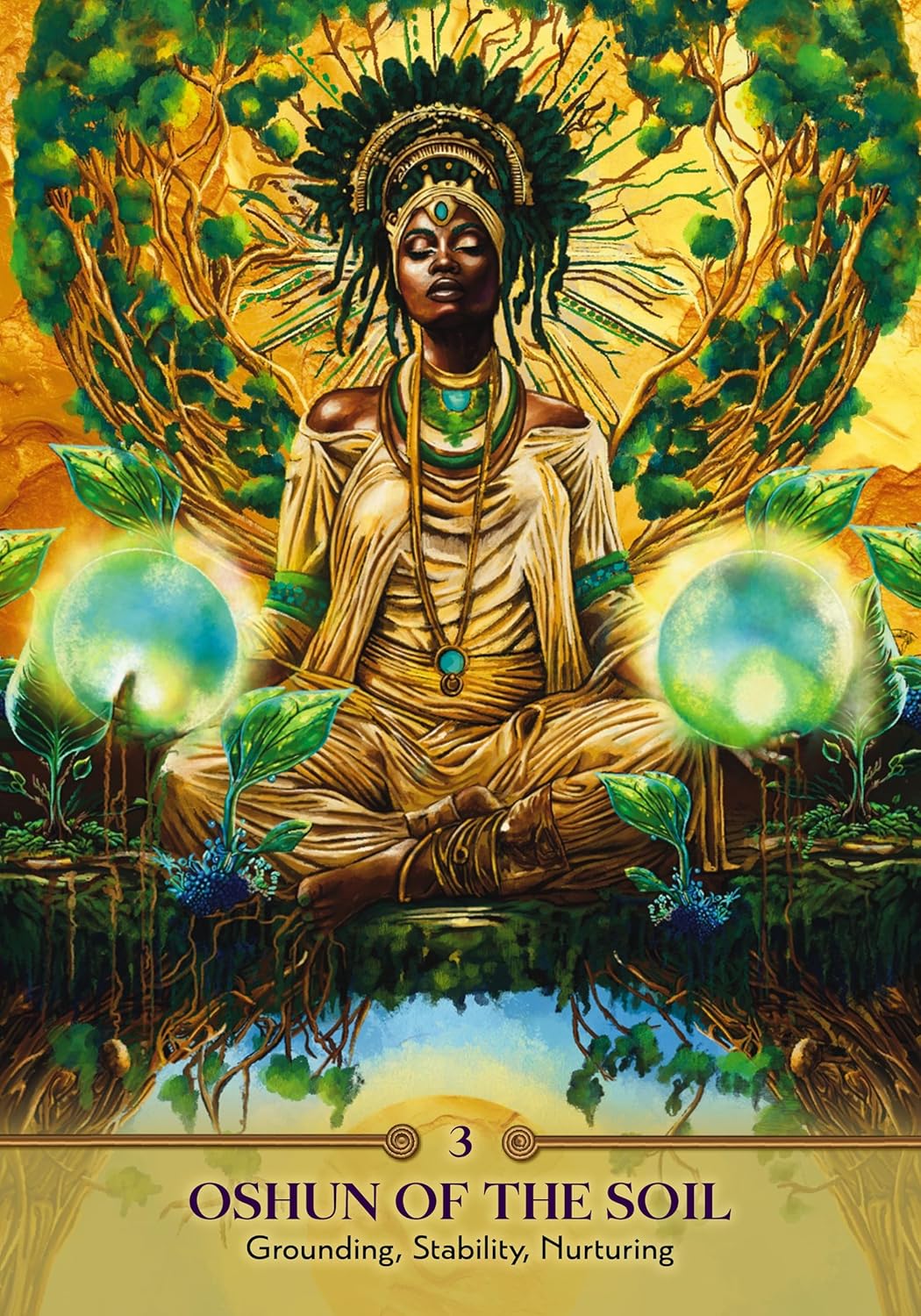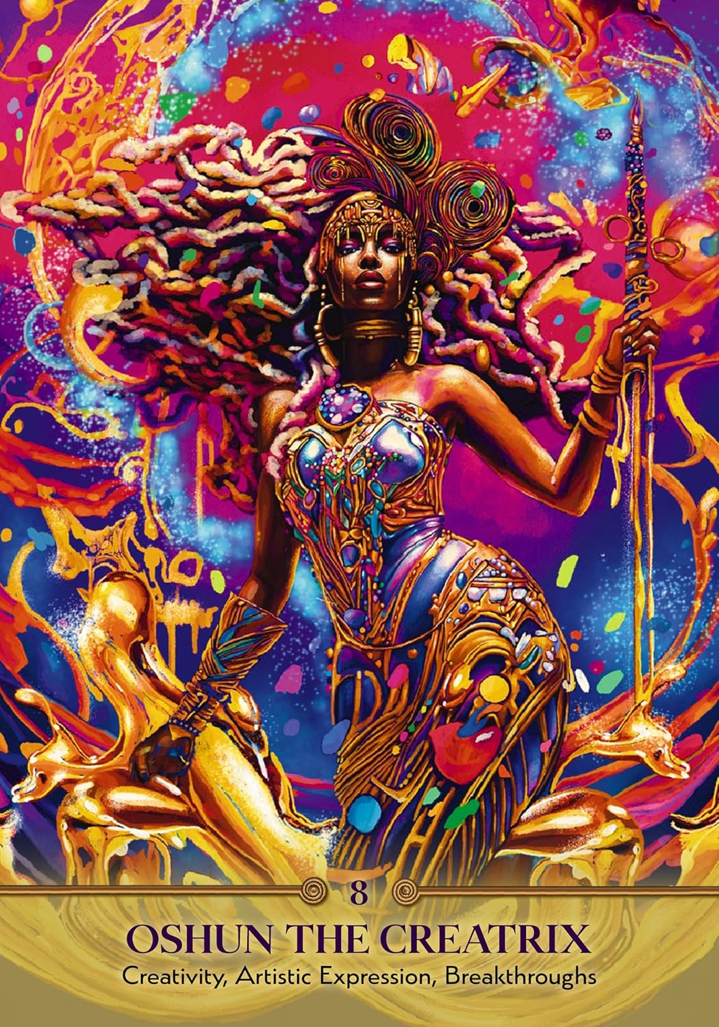 Atsiverk spindinčiai deivės Ošun energijai ir pažink įvairius dieviškojo moteriškumo aspektus savyje. Faces of Oshun Oracle kviečia tave susijungti su jorubų meilės, grožio, jausmingumo ir kūrybos deive Ošun. Šios kortos padeda atpažinti ir susigrąžinti savo šventas dovanas net ir emocinio sąstingio ar dvasinės painiavos akimirkomis. Kiekviena korta atspindi skirtingą Ošun aspektą – globojantį, drąsų, džiugų ar gydantį – ir siūlo žinutes, kurios padeda judėti savęs pažinimo, gausos ir autentiškos išraiškos link. Pridedamoje knygelėje rasi ritualų, apmąstymų ir afirmacijų, kurie lydės tavo dvasiniame kelyje. Tegul Ošun išmintis primena tau, kad esi verta saldumo, ryšio ir gilios vidinės meilės.