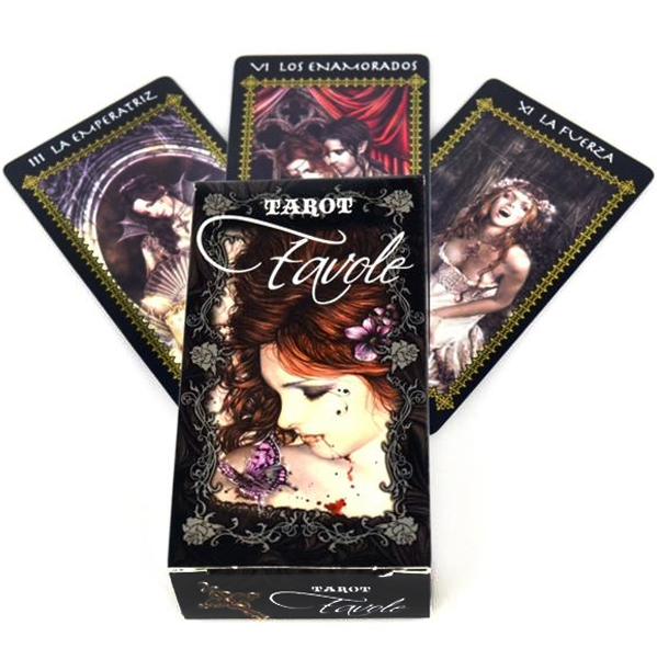 „Favole Tarot“ yra tamsus Viktorijos Francés gotikinio meno perlas. Kylanti fantastinių iliustracijų žvaigždė Francés sužavėjo Europą ir sparčiai sulaukia gerbėjų JAV. Stulbinantis Favole Tarot demonstruoja šio jauno iliustratoriaus firminį gotikinį romantišką stilių, kurio temos ir personažai įkvėpti Anne Rice, H. P. Lovecraft ir ikirafaelitinių paveikslų. Mėgaukitės šio svajingo, nesenstančio pasaulio, persekiojamo gražių vampyrų, tamsių fėjų ir kitų paslaptingų nakties būtybių, spindesyje. „Favole Tarot“ kostiumai skiriasi nuo „Rider-Waite“ tradicijos, čia rasite kryžių, kaukių, rožių ir drugelių. Nors kaladėje vešliai iliustruotos pagrindinės, joje laikomasi europietiškų mažųjų tradicijų ir vietoj taro scenų yra pasikartojančios pip kortos.