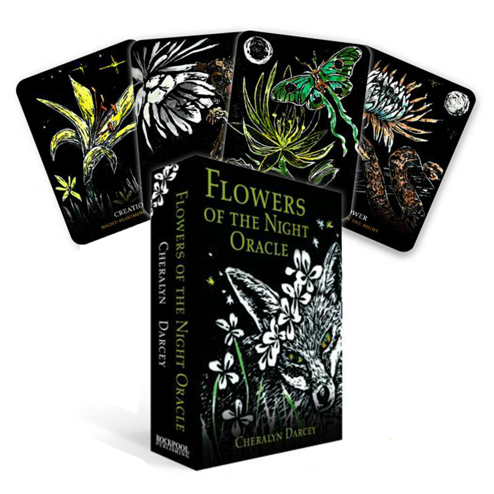 Užeikite į kerintį nakties sodą… Tyrinėkite savo galią ir aistrą su gėlėmis ir pamatykite vabzdžius bei elementus, kurie dalijasi savo naktiniu pasauliu. Gamtos autorė ir aplinkos menininkė Cheralyn Darcey dalijasi su jumis tikrąja gėlių kalba su „Flowers Of The Night Oracle“, kurią galima naudoti bet kokiu būdu naudojant gėles, įskaitant aromaterapiją, gėlių esencijas ir gėlių skaitymą. 44 kaladėje esančių kortų meno kūrinius sukūrė Cheralyn tradiciniu rankomis raižytu atspaudu, patobulintu mėnesienos šviesos spalvų akvareliniais dažais.