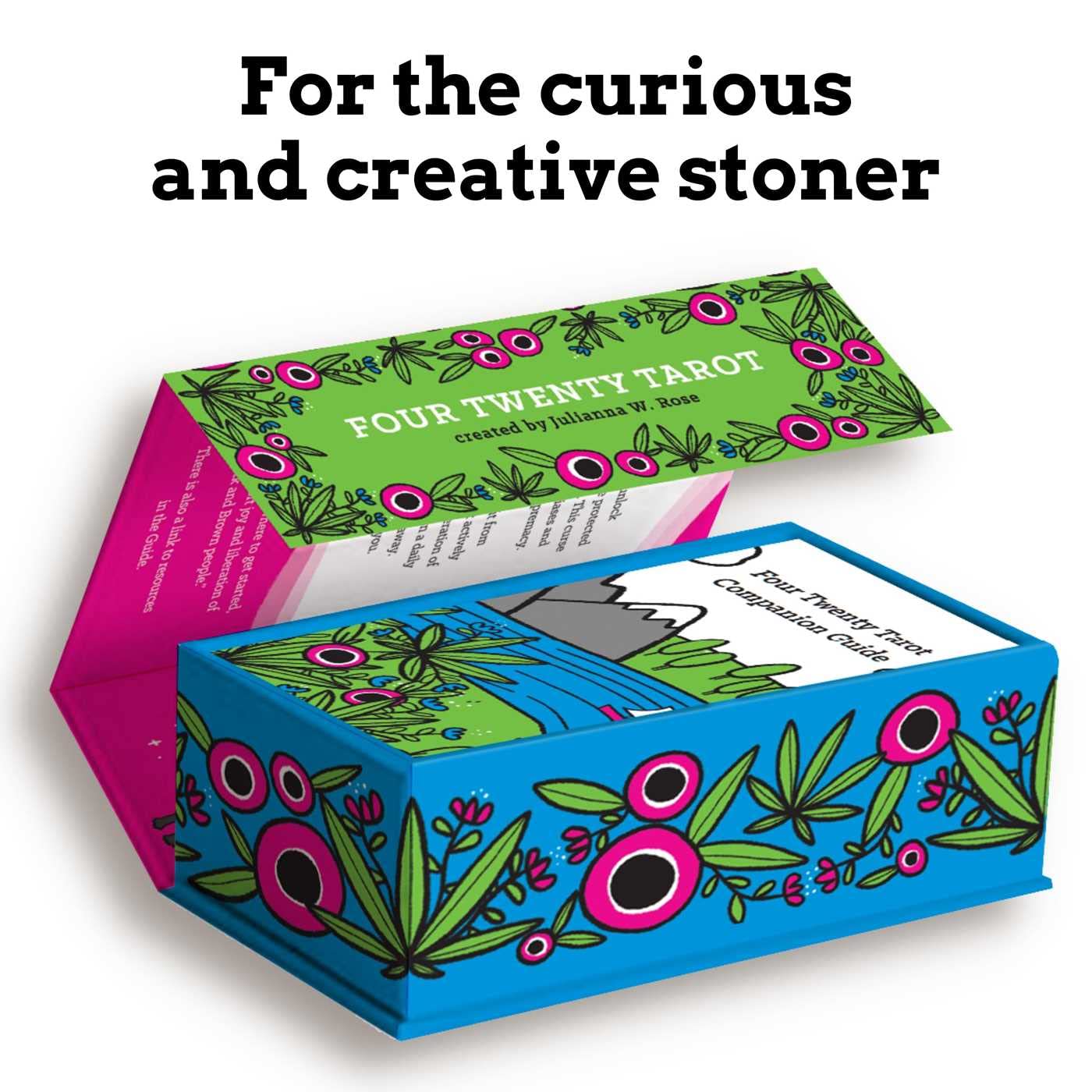 Mišrios rasės korėjiečių ir amerikiečių iliustratorės, stebuklingų įrankių kūrėjos ir kanapių entuziastės Julianna W. Rose sukurtas FOUR TWENTY TAROT kaladė sujungia kanapių magiją su tradicinio taro išmintimi lengvai naudojamoje kaladėje, skirta smalsiems ir kūrybiškiems ar bet kas, norintis atskleisti savo intuicijos galią. Mažiau patyrę taro žmonės įvertins gražiai iliustruotas korteles ir sulankstomą vadovą, kuriame yra tikrai įtraukiantis ir įvairus personažų asortimentas. Visiems skaitytojams patiks dirbti su Tarot Fairy Gnome – mažyčiu dvasios palydovu, esančiu kiekvienoje kaladėje, kurio vienintelis tikslas yra užtikrinti, kad ištrauktumėte tobulą kortą.