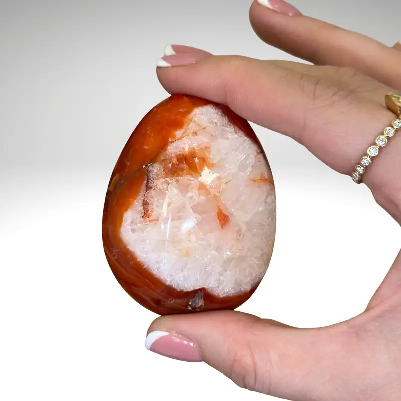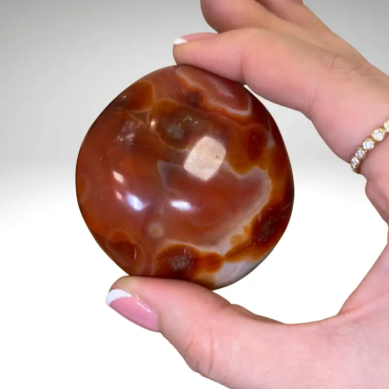Karneolis siejamas su gyvybine energija, judėjimu ir kūrybiškumu. Jis dažnai laikomas drąsos ir motyvacijos akmeniu. Šis mineralas padeda sustiprinti pasitikėjimą savimi ir ryžtą veikti. Karneolis gali būti naudingas tada, kai jaučiamas energijos stygius. Jo šilta spalva simbolizuoja gyvenimo džiaugsmą ir vidinę ugnį.
