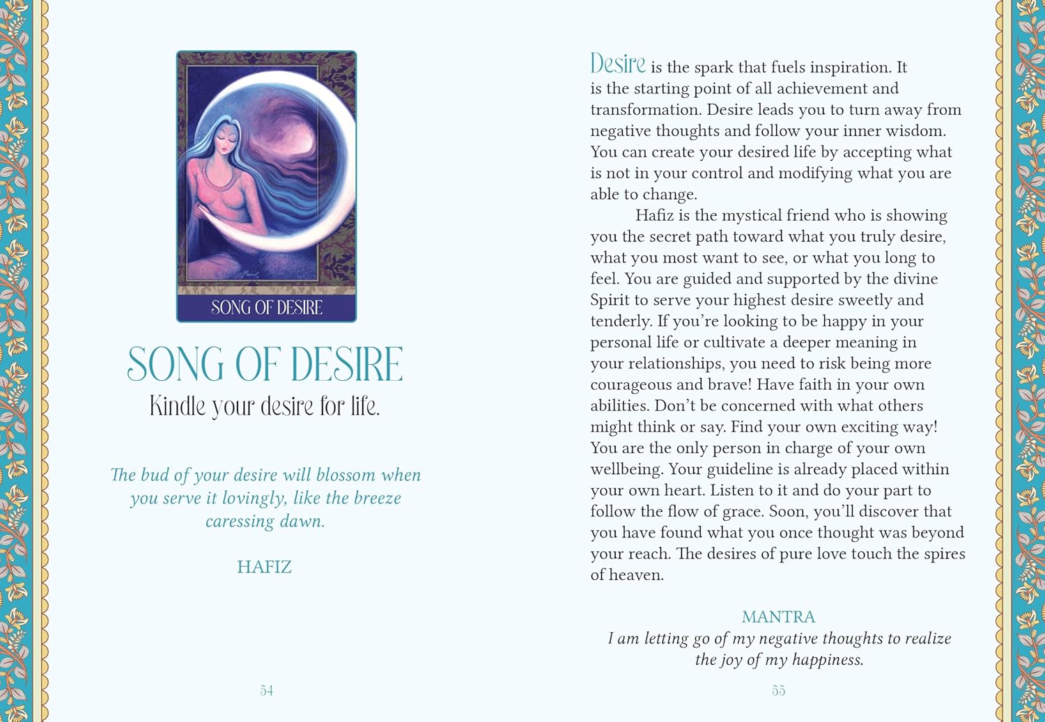 Tradiciškai vadinamas „paslėptųjų kalba“, Hafizas jau šimtmečius atskleidžia širdies paslaptis. Dabar, per 44 originalius ir meile išverstus eilėraščius, žinomas menininkas ir autorius Rassouli kviečia jus į kelionę po Hafizo ekstazės kupiną poeziją ir joje randamus patarimus. Su stulbinamai jausmingais meno kūriniais ir lyriškomis žinutėmis, kurios apšvies jūsų sielą, bei praktiniais teiginiais, kurie įdiegs šią išmintį į jūsų kasdienį gyvenimą, Rassouli visiems atskleidžia Hafizo magiją. Pasimėgaukite Hafizo žodžių grožiu ir leiskite šiam „širdies draugui“ atskleisti džiaugsmą ir ekstazę, kurie glūdi jūsų unikalios esybės viduje.