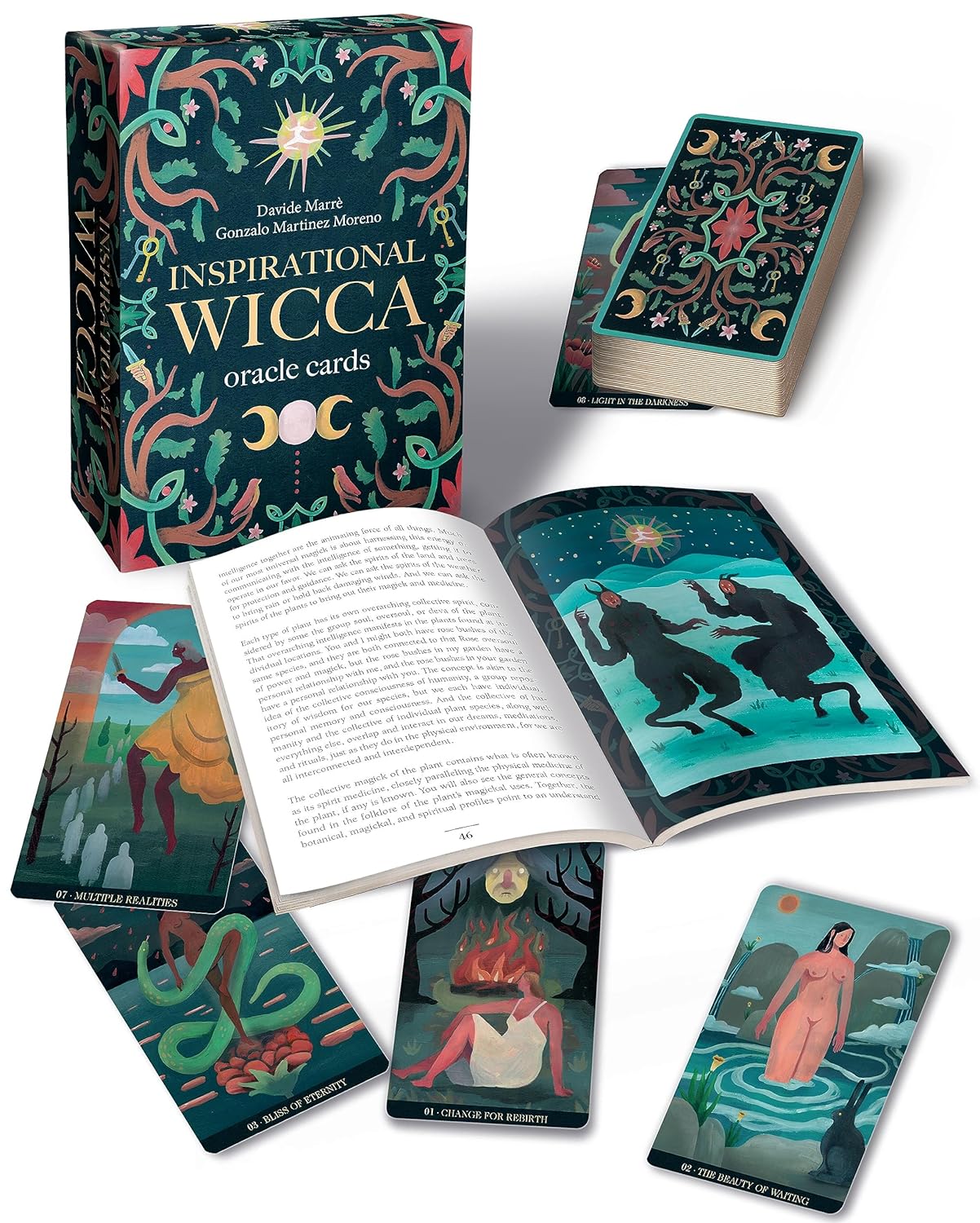 Šis naujas neįtikėtinas Davide Marrè ir Gonzalo Martínez Moreno Oracle rinkinys paima jus už rankos ir veda per Wicca pasaulį ir temas. Šį leidimą sudaro 36 kortelių Oracle kaladė ir knyga, pripildyta vertingo turinio apie šią žavią ir užburtą sferą, kuri siūlo kelią patirti magijos ir dvasingumo kupiną gyvenimą. Davide Marrè, Gonzalo M. Moreno 36 kortos, 78×120 mm. 192 puslapių, spalvota knyga. Daugiakalbis leidimas.