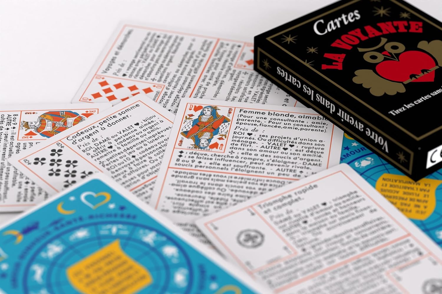 La Voyante – tai kortų kaladė, idealiai tinkanti tiems, kurie nori rasti atsakymus į savo klausimus: Meilė, sveikata, turtas. Tiesą sakant, jums nebereikia būti aiškiaregiu, kad kortose galėtumėte skaityti ateitį. 32 kortų rinkinys.