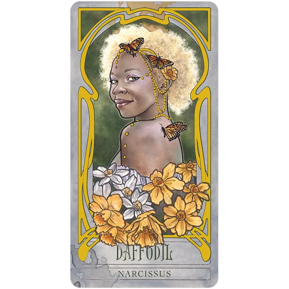 32 kortų orakulo kortų kaladė su indigo spalvos krašteliais ir aukso folijos akcentais, noveletė kietu viršeliu, iliustruotas vadovas su kortų reikšmėmis ir slaptojo sodo rakto replika – tai kaprizingas, botaninis rinkinys intuityviam skaitymui ir magiškam pasakojimui.