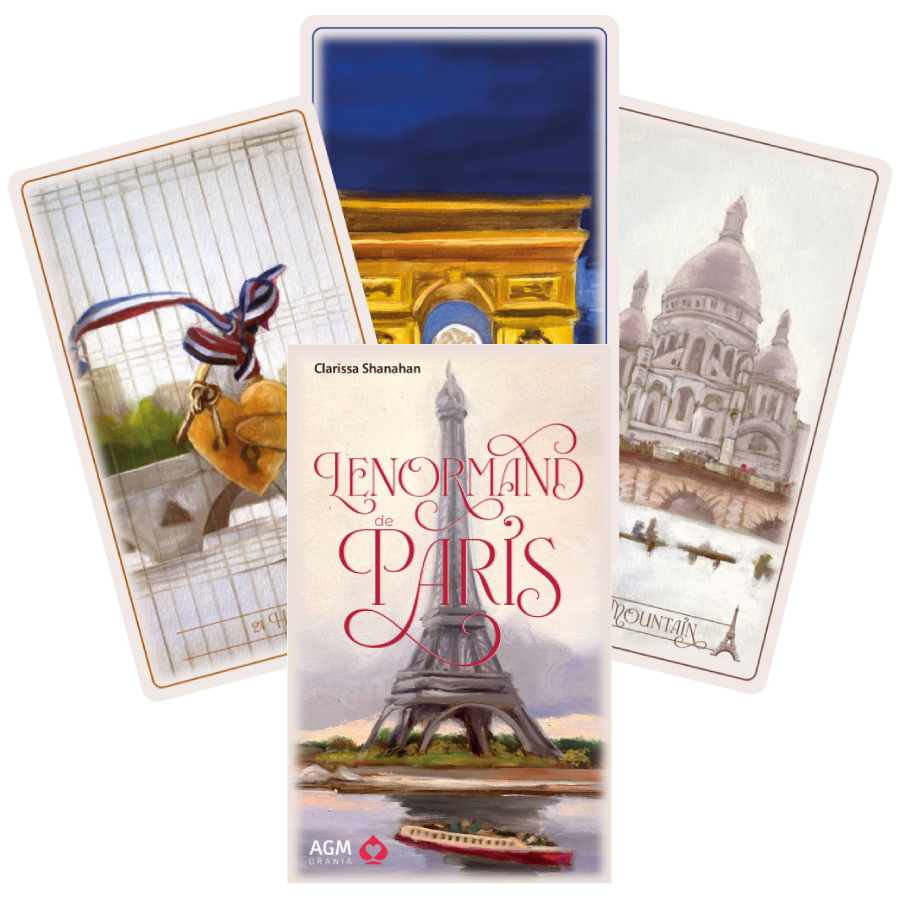 36 kortelės (120 x 70 mm), maždaug 140 puslapių knygelė, 2024 m. kovas. Lenormand de Paris – tai užburiantis laikui nepavaldžios XVIII a. kartomantijos tradicijos ir kultinių romantiškojo Paryžiaus miesto vaizdų lydinys. Remdamasis Lenormand tradicija, kurioje simboliai turi gilias reikšmes, o pasakojimas yra išaustas iš kortų, Lenormand de Paris sujungia praeities ir dabarties, spėjimo ir meno gijas. Nesvarbu, ar esate patyręs kortų aiškintojas, ar smalsus ieškotojas, ši kaladė siūlo simbolikos sluoksnius, kurie sužadins jūsų intuiciją ir pažadins vidinį orakulą. Clarissa Shanahan baigė Pensilvanijos universitetą ir Pensilvanijos dailės akademiją. Kilusi iš Niujorko, ji papildomai studijavo tapybą Niujorko dailės akademijoje. Clarissa praktikuoja taro jau daugiau nei 25 metus. Jos įsitikinimu, atsakymus gauname tada, kai mums jų reikia, iš bet kurio šaltinio, kuriam esame atviri.