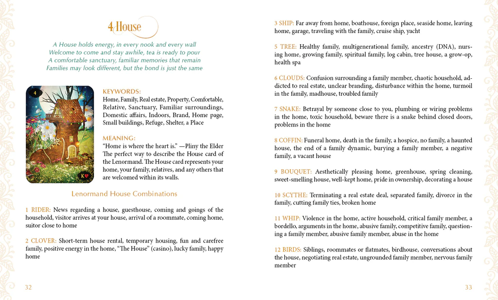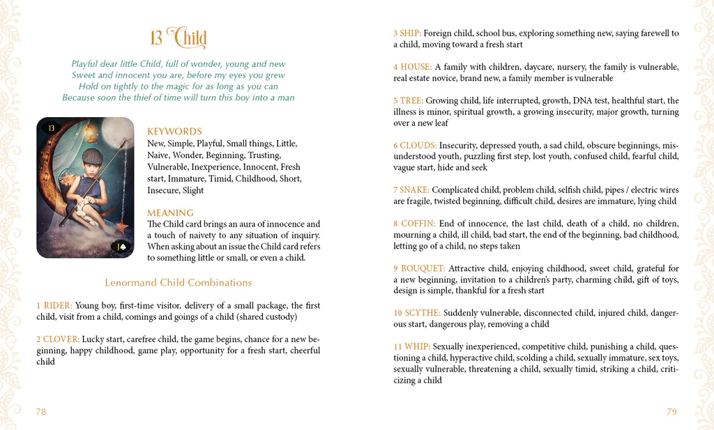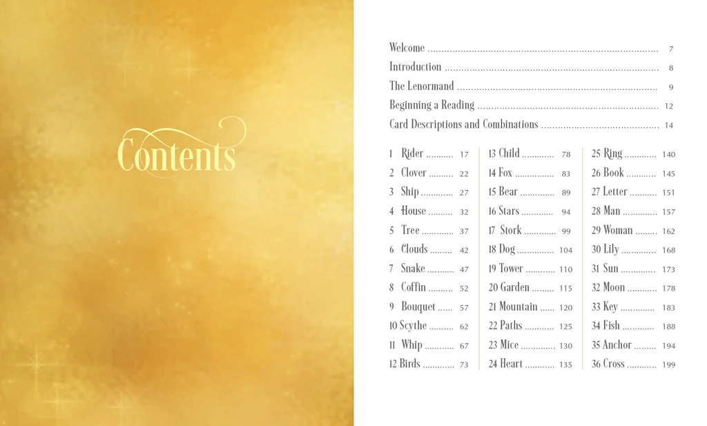 Nesvarbu, ar esate pradedantysis, ar patyręs profesionalas, šis rinkinys garantuotai suteiks kažką naujo. Puikiai tinka tiems, kurie nori giliai susipažinti su kortomis ir paversti jas savo vadovu, ieškančiu atsakymų į svarbiausius gyvenimo klausimus. Stulbinantis meno kūrinys nukels skaitytoją į magiškas vietas, o dar nematyti kortelių deriniai įkvėps dar labiau pasinerti į meno niuansus. Vadovas turi kažką kiekvienam, apimantis daugybę temų ir visas sudėtingas gyvenimo situacijas. Įtraukti unikalūs ir susimąstyti skatinantys kortelių deriniai, nukreipiantys skaitytoją savęs atradimo keliu. „Lenormand“ yra itin universalus įrankis ir juo naudotis taip pat paprasta, kaip dėlioti korteles ir atsiversti puslapį, kad rastumėte atsakymą.