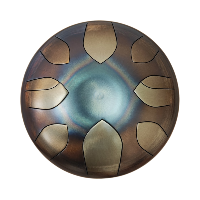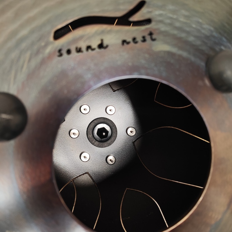 Šis liežuvėlių būgnas (tongue drum) 30cm yra kruopščiai rankomis gaminamas plieninis instrumentas, kuriamas Lietuvos miškuose su ypatingu dėmesiu garsui, formai ir energijai. Kiekvienas būgnas yra unikalus, išdegtas ugnimi, todėl jo spalvos ir raštai – nepakartojami.