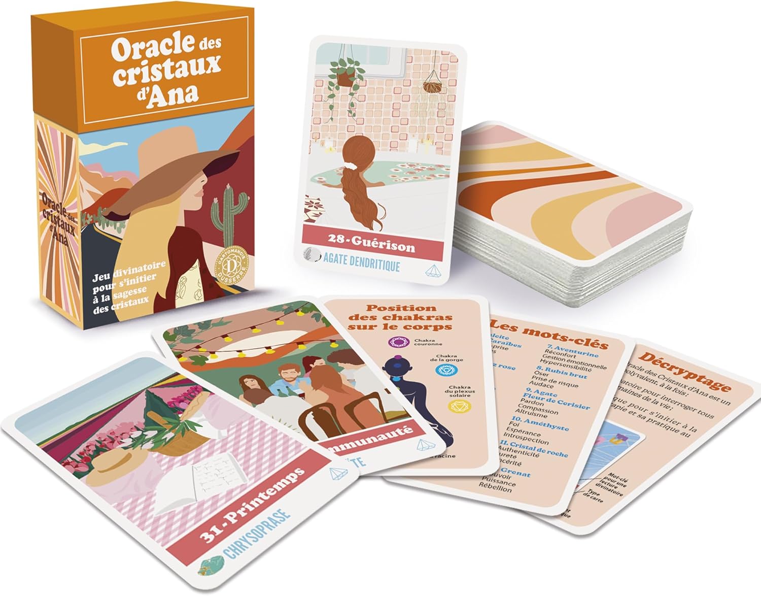 „L’Oracle des Cristaux d’Ana“ – tai žaismingas burtų žaidimas, kuriame supažindinama su litografija ir gilinamasi į kristalų išmintį bei gydomąsias savybes. Ši unikali kaladė padės jums susipažinti su šiuolaikine burtų praktika, skirta jūsų introspekcinei kelionei. Šį 80 kortų žaidimą sudaro 67 burtų kortos, kurių kiekviena tematiškai susijusi su mineralu. 13 mokomųjų kortelių paaiškina, kaip naudotis žaidimu su raktažodžių kortelėmis. Taip pat yra QR kodas mokomajam vaizdo įrašui ir PDF formato vadovas. Anos kristalų orakulas padeda transmutuoti ir subalansuoti energiją, čakras ir namus. Kortų traukimo sinchroniškumas padės pasirinkti akmenį (-us) pagal asmeninius poreikius.