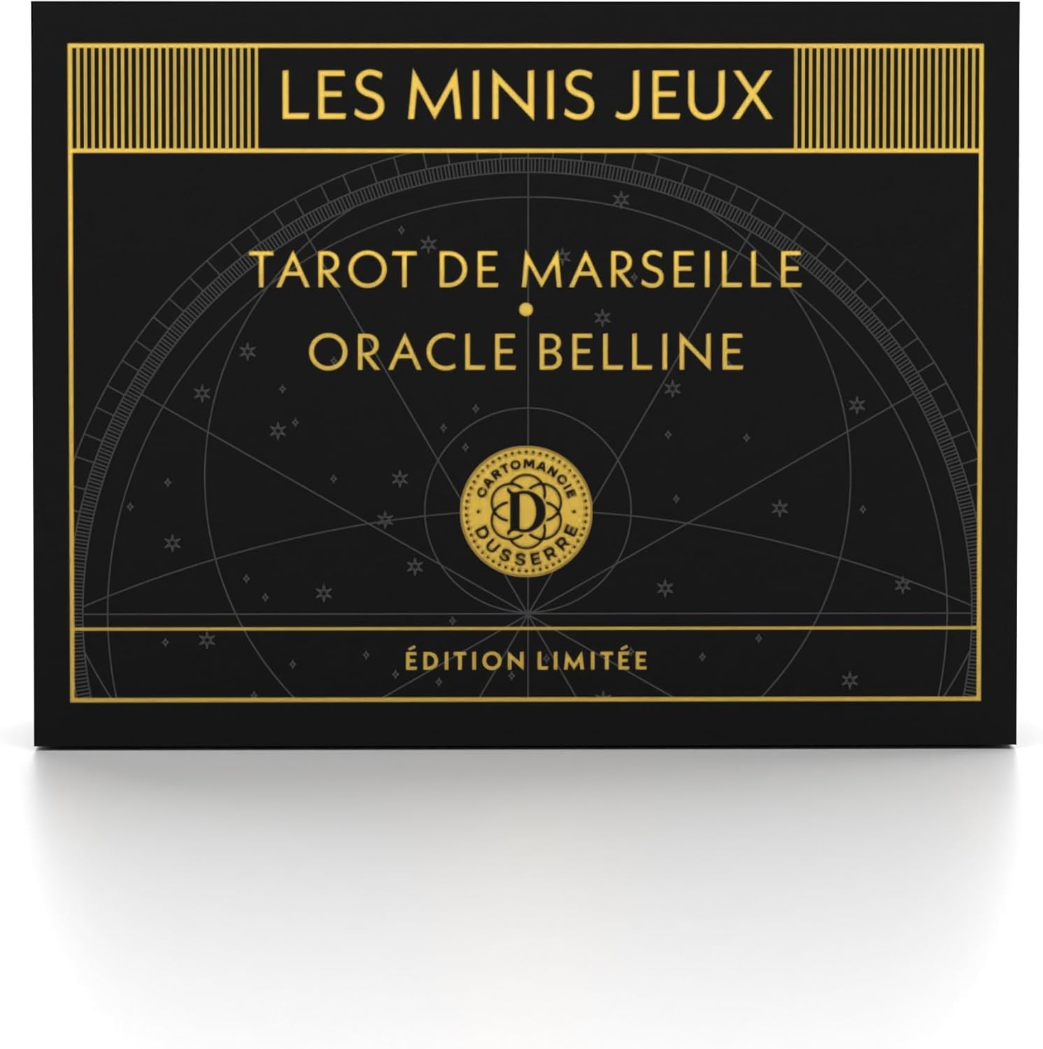 Pasinerkite į užburiantį burtų pasaulį su šia „Dusserre“ kolekcine dėžute. Ši riboto tiražo miniatiūrinė dėžutė elegantiškai ir rafinuotai atiduoda duoklę prancūziškiems burtų klasikams. Tarot de Marseille, gražiai perdažytas pasteliniais atspalviais, švelniai ir subtiliai perteikia šį tradicinį žaidimą / Oracle Belline, garsėjantis savo pranašystės simboliais, derinančiais kortas ir astrologiją, siūlo unikalų požiūrį į pranašystes ir patarimus.