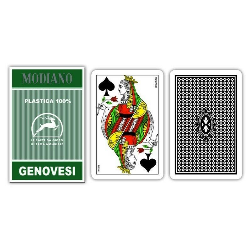 Kortos su prancūziškais ženklais, skaičiais, dvigubu skeltuku, su įstriža linija, stilius artimesnis prancūziškam, bet pamaldus belgiškam. Žalios spalvos pakuotė. Prekės savybės: modelis – GENOESE PVC, 40 kortų, dydis – 58 x 88 mm, medžiaga – plastikas 100%, lankstus, ilgaamžis, plaunamas.