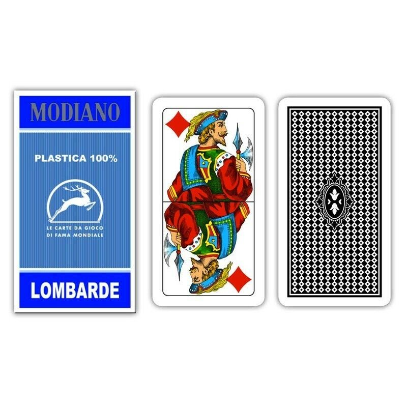 Grafiškai pertvarkyta kortų kaladė su prancūziškais ženklais. Skaičiai yra labai detalūs ir pateikiami dviguboje versijoje, pjūvis yra ant horizontalios ašies. Pakuotė mėlynos spalvos. Produkto savybės: modelis – LOMBARDY 6/10 PVC, 42 kortos (40 + 2 instrukcijos scopa ir briscola), matmenys – 50,5 mm x 94 mm, medžiaga – 100% plastikas, lankstus, ilgaamžis, plaunamas.