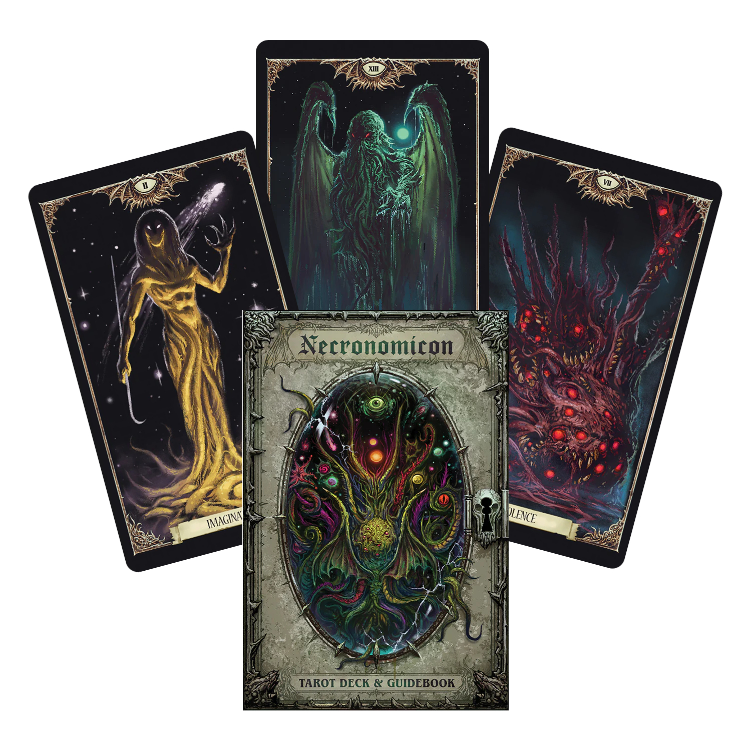 Ši taro kaladė su prabangiu, H. P. Lovecrafto “Nekronomikono” įkvėptu piešiniu – tai unikalus būdas susipažinti su populiariomis H. P. Lovecrafto keistomis, mokslinės fantastikos, fantasy ir siaubo istorijomis. Rinkinyje yra standartinės sudėties taro kortos su didžiuoju, ir mažuoju arkanais, taip pat išsamus vadovas, kuriame paaiškinama kiekvienos kortos reikšmė ir siūlomi paprasti išdėstymai, kad būtų lengva skaityti. Įdėta į tvirtą dekoratyvinę dovanų dėžutę, ši įtikinama taro kaladė puikiai tinka tiek H. P. Lovecrafto gerbėjams, tiek taro entuziastams.