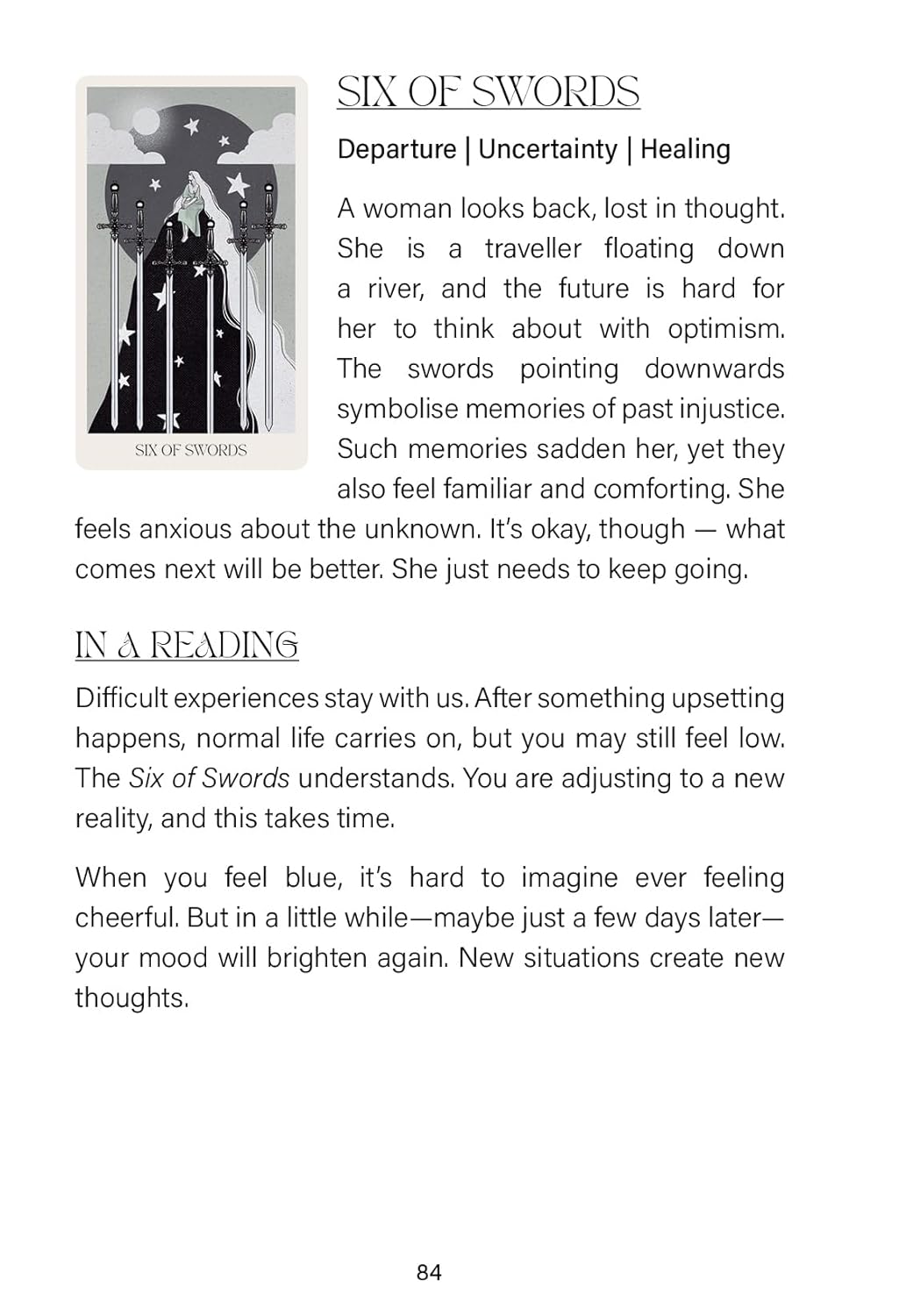 Ar trokštate geriau suprasti pasaulį ir savo vietą jame? Nova Witch Tarot – tai žavinga kaladė, pritaikyta jaunoms širdims ir tiems, kurie dar tik susipažįsta su taro kortomis. Šios 78 kortos ir spalvotas žinynas yra patikimi sąjungininkai, padedantys šokti per gyvenimo posūkius su empatija ir meile sau. Apšvieskite nesuskaičiuojamą daugybę savo būties aspektų, atrasdami paslėptą potencialą ir netikėtus kelius į ateitį.