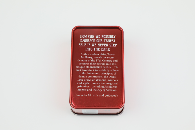 Tai pirmoji taro kaladė, kurioje tiksliai laikomasi Solomono demonų užkalbėjimo principų, todėl „Occult Tarot Pocket Edition“ leidžia praktikuojantiems atrasti senovės demonų galią ir išmokti sutramdyti tarp fizinio ir dvasinio pasaulių klajojančius žvėris.