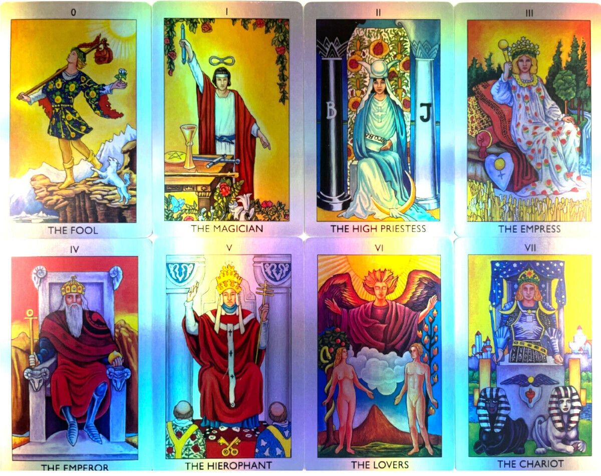 Atspausdinta ant liuminescencinių holografinių kortų, ši tviskanti taro kaladė paryškina ryškias Radiant Rider-Waite® spalvas, kad būtų galima dinamiškai skaityti. Joje yra 78 kortos ir 60 puslapių tradicinių taro reikšmių knygelė.