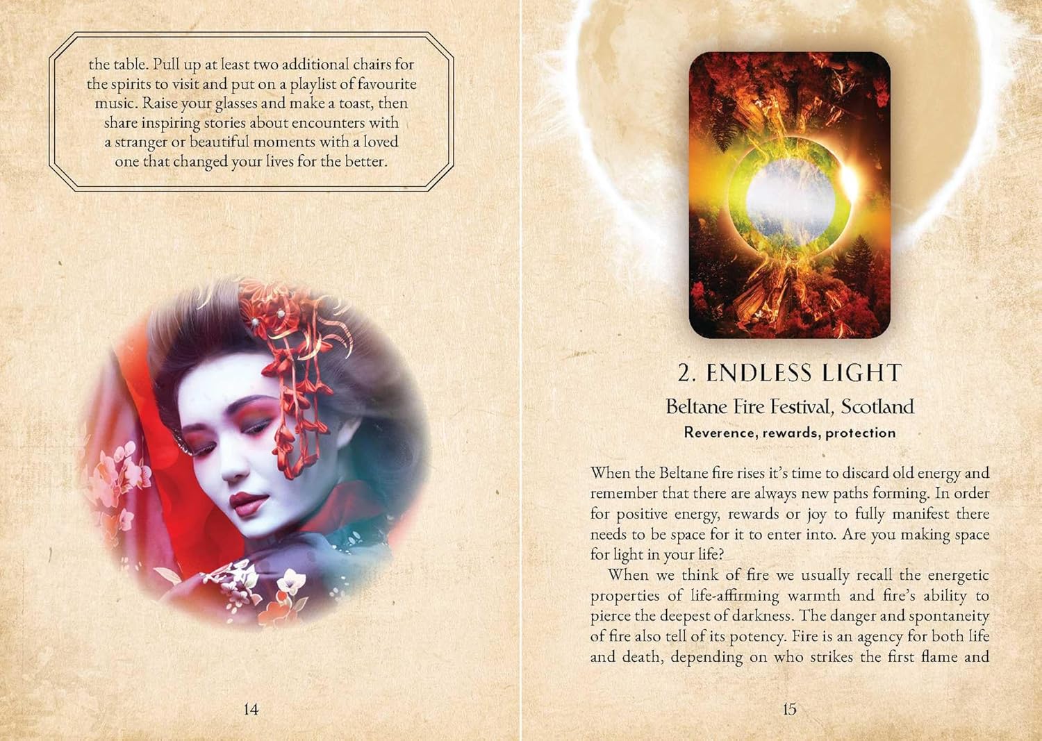 Šios kortų kaladės žinutės siekia įkvėpti jūsų kūrybiškumą ir intuiciją, o su kiekvienu festivaliu susiję ritualai leidžia jums giliau susipažinti su jų reikšme. Nesvarbu, ar tai Meksikos Mirusiųjų diena, ar gyvenimo šventė per Mardi Gras Naujojo Orleano mieste, priimkite šių švenčių pamokas ir įtraukite jas į savo gyvenimą.