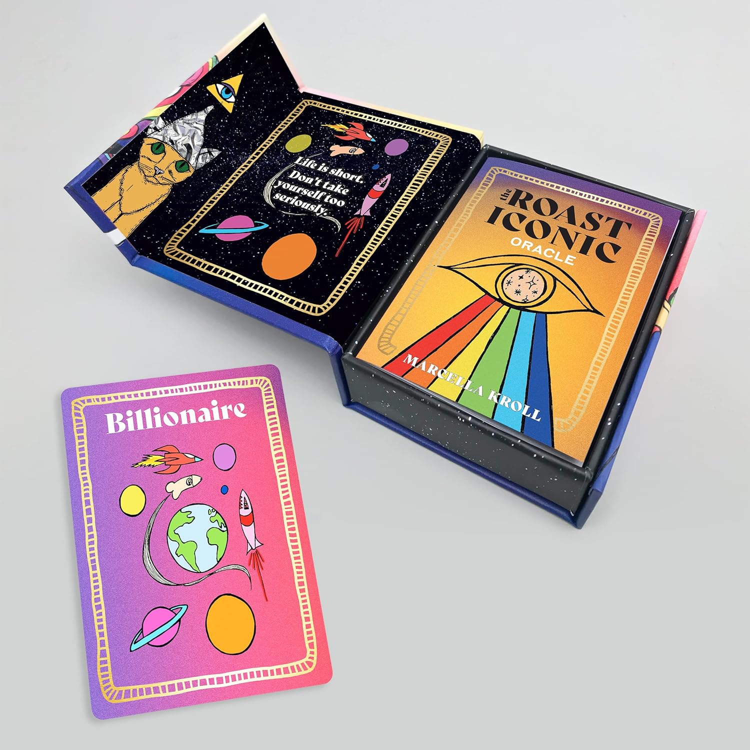 Kai traukiate vienos dienos kortas ir ieškote ženklo iš kortų, kas nutinka, kai ištraukiate „Fashion Witch? Influencer? Red Flag?” Ši tyčia įžūli 30 kortų kaladė, kurią sukūrė žinoma ragana Marcella Kroll, yra puikus būdas gauti tikrąjį Visatos žodį. Nesitenkinkite tuo, kad jus lepina Rider-Waite-Smith. Ši kaladė nedvejodama mestels šešėlį arba pasakys, kad per daug stengiatės. Jei pavargote nuo mistinių Lenormandų apribojimų, pasigrožėkite linksmomis Krollo ranka pieštomis iliustracijomis. Tiesmukas, pilnas druskos, šiuolaikiškai pateiktas ir paveikus, “Roast Iconic ” yra kaip tik tai, ko jums reikia tomis dienomis, kai reikia, kad intuityvios žinios būtų kuo tiesmukesnės.