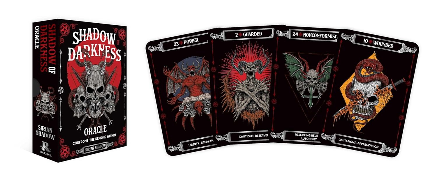Šis neįtikėtinas kortų rinkinys yra jūsų gidas, padėsiantis atrasti jūsų gyvenimo akluosius taškus ir išgydyti juos. Per giluminę šešėlių darbo praktiką jūs iškelsite į paviršių pasąmonės modelius, išsilaisvinsite iš ribojančių įsitikinimų ir gausite gilesnį įžvalgą į savo tamsesnius aspektus ir slopintas emocijas. Šio kortų rinkinio iliustracijos, įkvėptos maištingos heavy metal muzikos dvasios, perteikia transformacijos ir įgalinimo esmę. Kiekviena korta sukurta tam, kad iššauktų jus ir paskatintų introspekciją, kviesdama tyrinėti pasipriešinimo sritis, kurios gali jus stabdyti. Nesvarbu, ar esate patyręs praktikuotojas, ar tik pradedate savo šešėlinio darbo kelionę, „The Shadow of Darkness Oracle“ siūlo galingus patarimus ir gaires, kurie padės jums giliai pasinerti į savo vidinį pasaulį.
