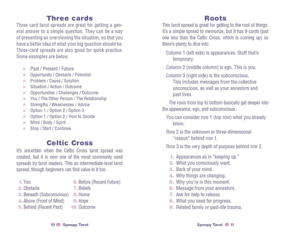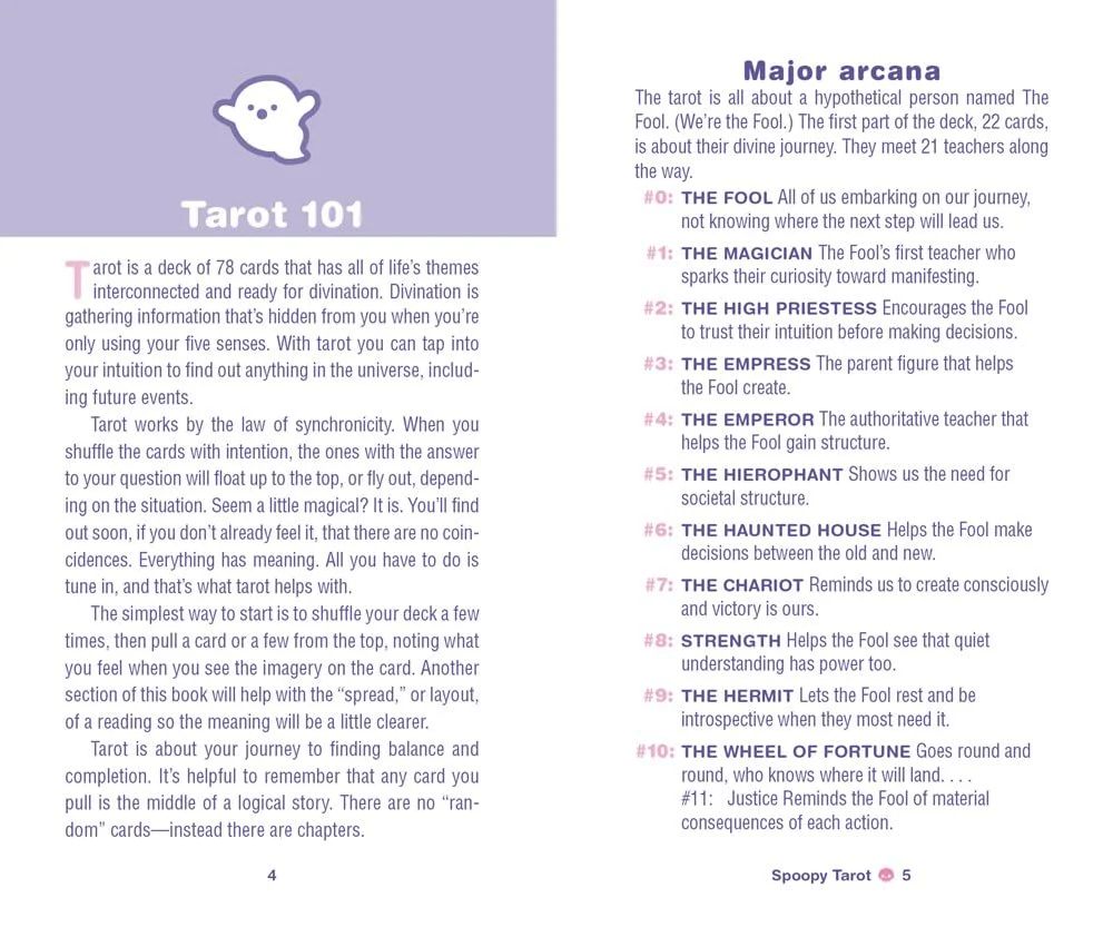 „Spoopy Tarot“ yra kawaii skanėstas visiems baisaus sezono apgavikams, kuriame yra klasikinis taro rinkinys, pergalvotas su mielais li’l vaiduokliais, bjauriomis raganomis ir kitais linksmais dalykais, kurie užklumpa naktį. Vietoj kvailio kelionės, Spoopy Tarot seka dvasią, sklandančią per užkeiktą namą, susidurdamas su 78 nepaprastai žaviomis tradicinių taro archetipų versijomis didžiojoje ir mažojoje arkanoje.