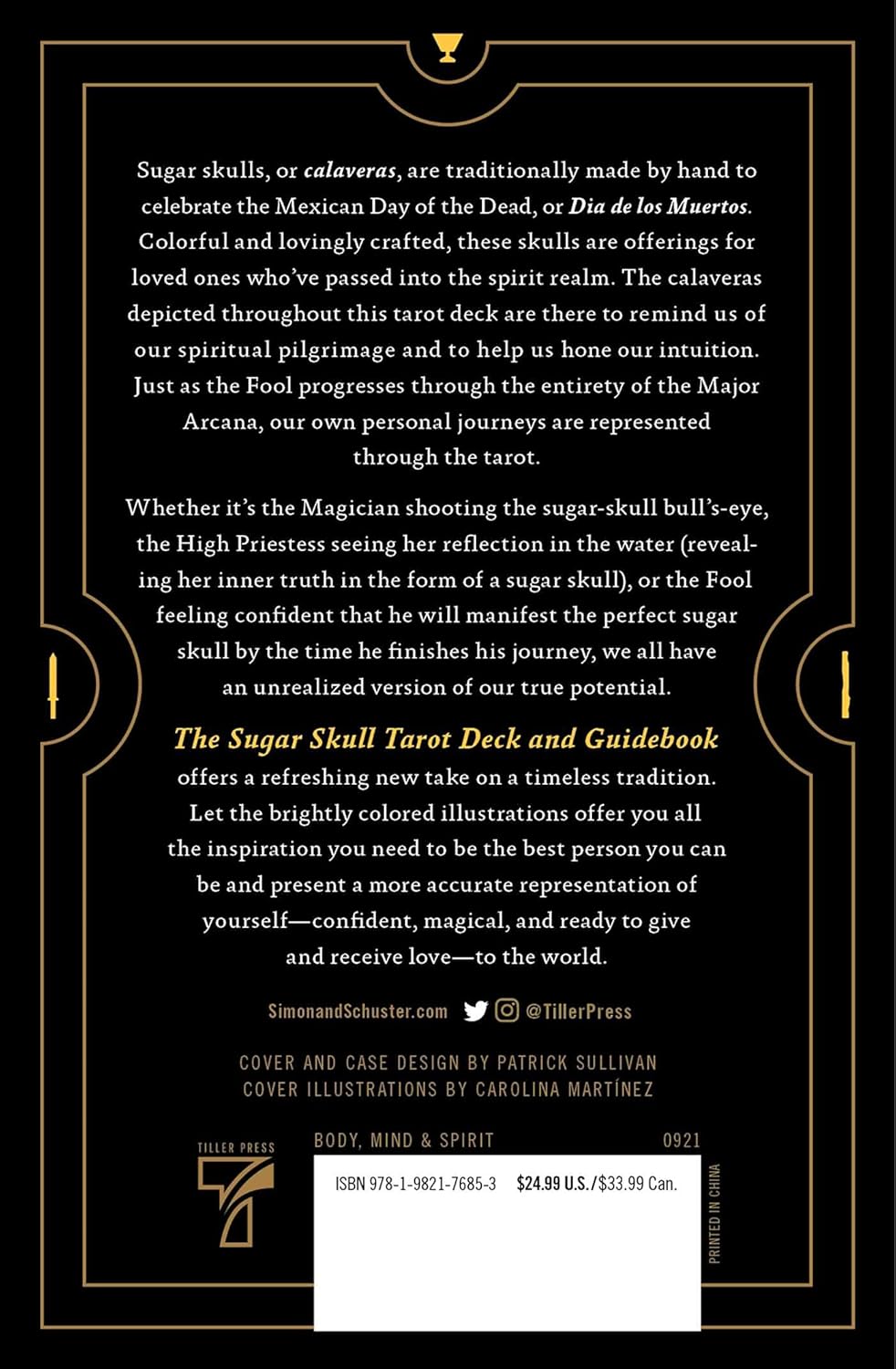 Šioje lengvoje, gražiai iliustruotoje kaladėje ir vadove dvasinė “Sugar Skull” mistika naujai interpretuoja kiekvieną iš didžiųjų ir mažųjų arkanų ir padeda tobulinti intuiciją. Cukrinės kaukolės, arba kalaveros, tradiciškai daromos rankomis, švenčiant Meksikoje Mirusiųjų dieną, arba Dia de Muertos. Spalvingos ir su meile pagamintos kaukolės yra aukos artimiesiems, išėjusiems į dvasių pasaulį. Šioje kaladėje pavaizduotos cukrinės kaukolės turi priminti mums apie mūsų dvasinę kelionę ir padėti pasiekti visą savo potencialą. Kaip Kvailys eina per visą Didžiųjų arkanų ciklą, taip ir mes visi turime savo asmenines keliones, kurios vaizduojamos per taro.