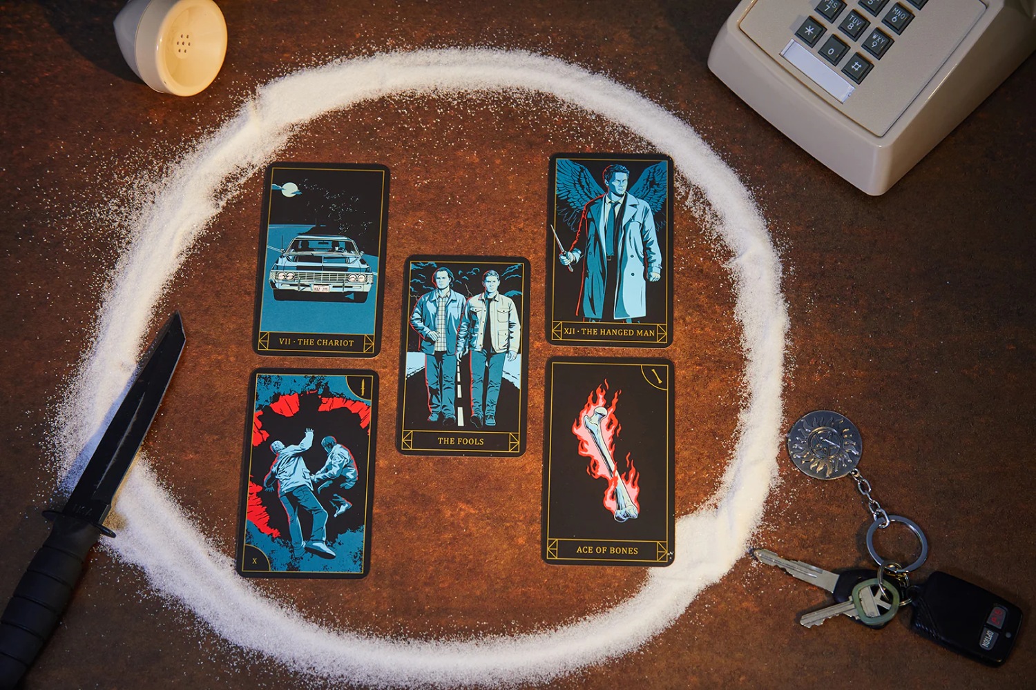Ilgai rodomas televizijos serialas „Supernatural“ dabar yra iliustruota taro kaladė! Originalūs meno kūriniai, įkvėpti klasikinės taro ikonografijos, 78 kortų kaladėje yra visi jūsų mėgstami personažai nuo Samo ir Deano, Bobby Singerio, Castielio iki Crowley. Kalenėje taip pat yra naudingas vadovas, paaiškinantis kiekvienos kortelės reikšmę, taip pat keletas paprastų paskirstymų, kad būtų lengviau skaityti. Tai puiki dovana Supernatural gerbėjams ir taro entuziastams!