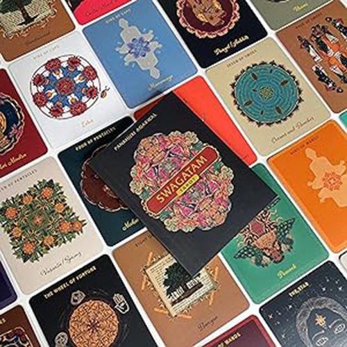 Žodis swagatam reiškia „sveiki atvykę“ iš sanskrito, vienos iš seniausių kalbų pasaulyje. Sanskrito kalbos gimtinė buvo Indijos subkontinentas, kuris taip pat buvo didžiųjų civilizacijų lopšys. Ši kaladė yra paremtas Indijos kultūra. Jame pateikiamos gydymo ir gyvenimo būdo sąvokos, kurios per daugelį amžių buvo svarbios gerovei ir kurias gali naudoti žmonės visame pasaulyje. Šioje kaladėje rasite išsamią informaciją apie tai, kaip jas panaudoti savo asmeninei naudai, rasite tradicinę Taro energiją ir „swag“, kuris yra ir Taro, ir Indija. Swaga kiekviename atome sukuria šio „swagatam“ denio energiją! Šioje kaladėje yra papildomas kostiumas, Smoke kostiumas, kuris buvo pristatytas Mažojoje Arkanoje. Be įprasto kortelių grupavimo pagal pavyzdį, kortelės taip pat sugrupuojamos pagal joms atstovaujamus skaičius. Pavyzdžiui, tūzai yra rankų gestai, o karalienės yra gyvūnai. Didysis Arkanas seka sielos kelionę ir išbandymus, kaip paaiškinta induizmo filosofijoje.