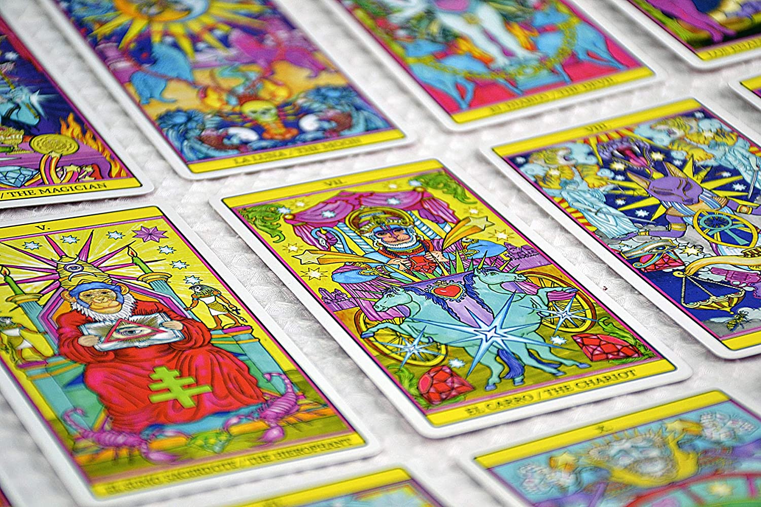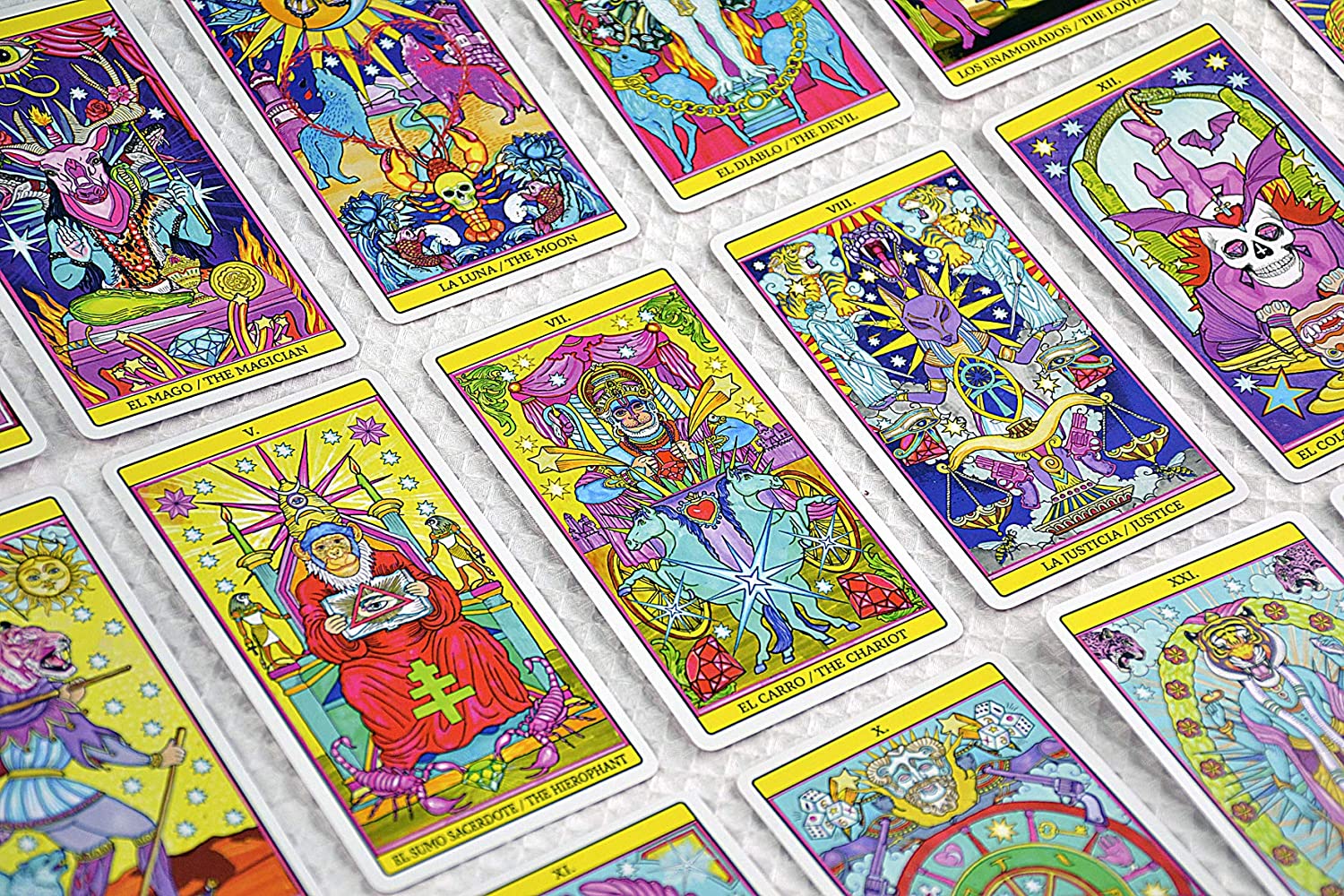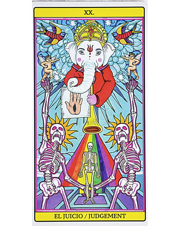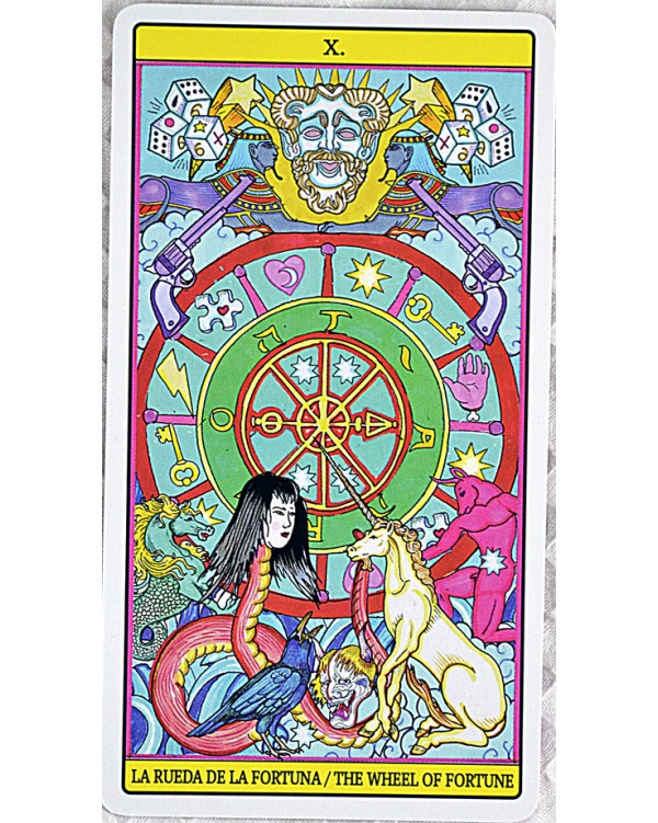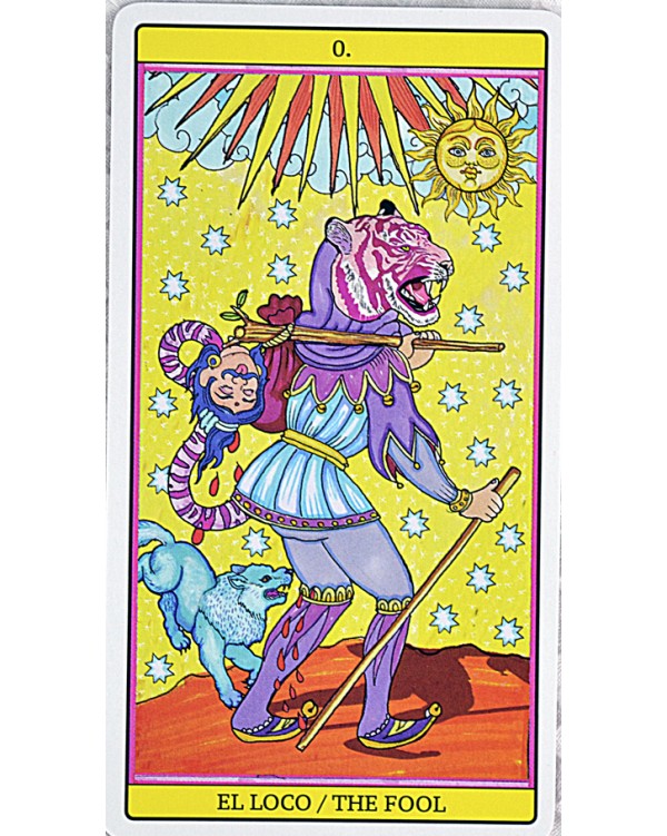 Tarot de El dios de los tres tikslas yra užlieti viską, kas liečiasi su ja, savo vidine ir ypatingos estetikos visata: ode fantazijai, spalvomis ir nuostabiu reginiu. Ryški vaizdinė kosmogonija, suteikianti mūsų taro kortoms energijos, pozityvumo, džiaugsmo ir laisvės. 78 Taro kortų kaladė, dėžutė pagaminta iš aukštos kokybės polichrominio kartono. El dios de los tres yra meniškas prekės ženklas, susietas su Javieru Navarro, kuris yra atsidavęs freskoms ir jų realizacijai, renginiams, bendradarbiavimui su kitais prekės ženklais, dekoravimui, meniniam darbui ir iliustracijai.