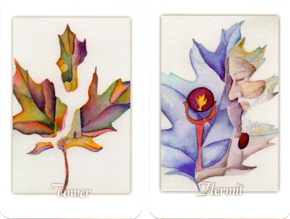 Tarot Leaves – kortų tyrinėjimas per gamtos grožį, matomą vaizduose, nupieštuose pagal klevo, obuolio, ąžuolo ir beržo lapų siluetus. Naudodami spalvą, kad perteiktumėte meninių kortelių reikšmes, kiekviena kortelė pavaizduota lapeliu, kuriame inovatyvūs vaizdai ir simboliai yra paslėpti. Spalvingas ir sudėtingas lapo vaizdas sutampa su vaizdiniu pranešimu ir atvirkščiai.