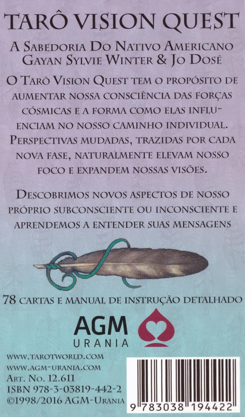 Amerikos indėnų įkvėptas Gayan Sylvie Winter ir Jo Dosé. „Vision Quest Tarot“ tikslas – didinti mūsų supratimą apie kosmines jėgas ir jų įtaką mūsų individualiam keliui. Pasikeitusios perspektyvos, kurias lemia kiekvienas naujas etapas, natūraliai didina mūsų dėmesį ir plečia mūsų akiratį. Mes atrandame naujus savo pasąmonės kelius ir mokomės suprasti jos siunčiamus pranešimus.