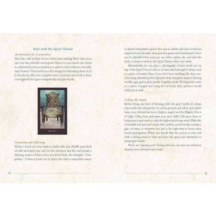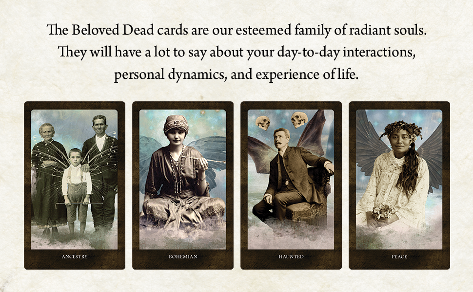 Jūsų kolektyvinė protėvių archetipų šeima laukia jūsų “The Beloved Dead”. Jie turės daug ką pasakyti apie jūsų kasdienį bendravimą, tarpasmeninę dinamiką ir vidinį gyvenimą. Užduokite mylimiems mirusiesiems klausimą ir užmegzkite ryšį su sąmone, kuri paliko žemės formą ir dabar gyvena energetiškai, kaip Dvasia. Kiekviena šioje kaladėje esanti dvasia yra ryški žvaigždyno žvaigždė, kuri nušviečia jūsų sielos užburtą kelią į neribotą potencialą. Tai jūsų globojančių ir vedančių protėvių balsai – dvasinių pagalbininkų, kurie supranta, kad kiekvieną minutę, kurią praleidžiate šioje uždangos pusėje, reikia atlikti didelį darbą. Kartais “The Beloved Dead” orakulo kortos simbolizuoja konkrečią sielą, gyvą ar dvasią; kartais jos gali perteikti patirtį, prisiminimą, įvykį ar perspektyvą ir visada pateikia žinią, susijusią su jūsų klausimo kontekstu.