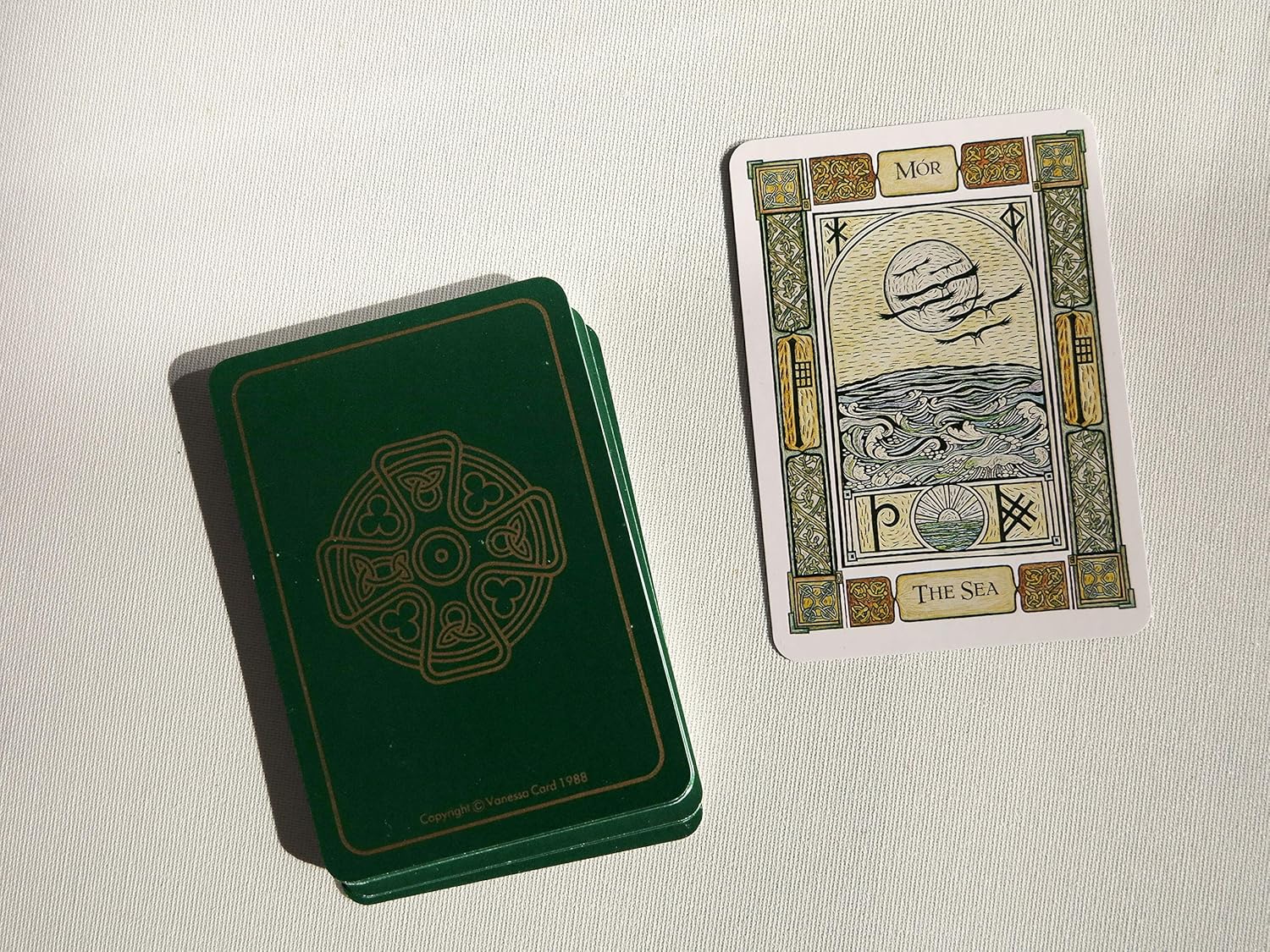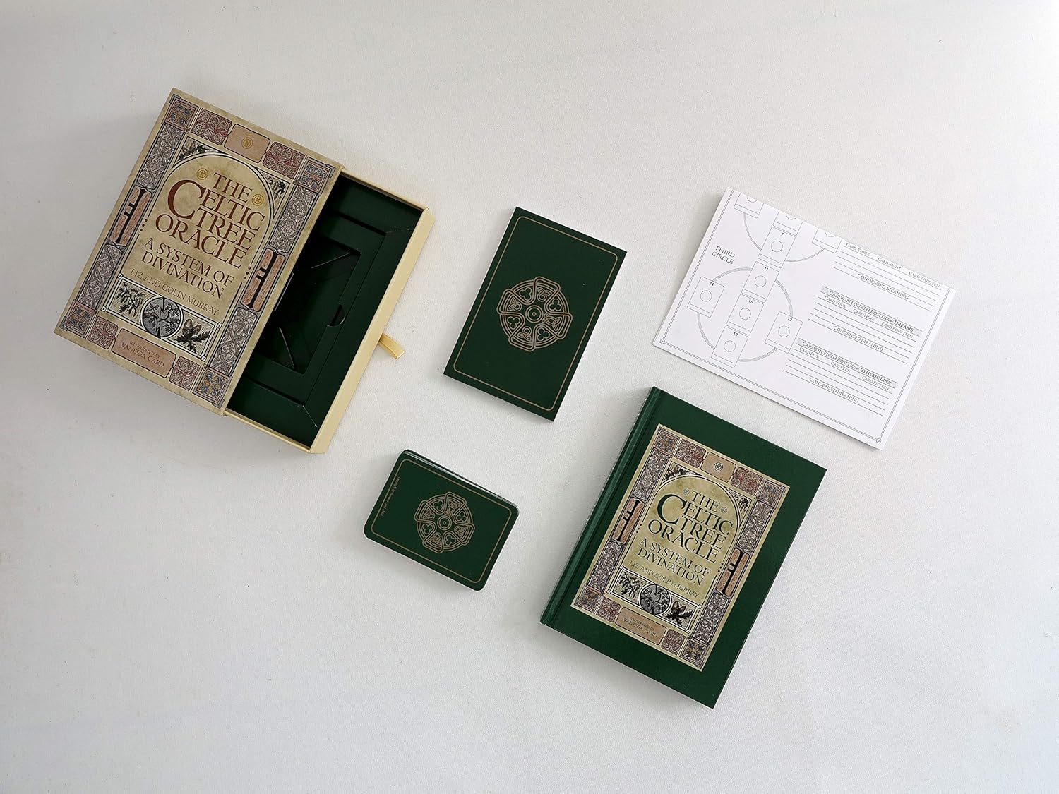 Keltų Ogham arba medžio abėcėlėje kiekviena raidė įkūnija medžio ar augalo dvasią, čia pavaizduota gausiai dekoruotoje kortelėje. Nepriklausomai nuo jūsų klausimo, abejonių ar nerimo, 2000 metų senumo THE CELTIC TREE ORACLE išmintis suteikia puikių patarimų ir įžvalgų šiandieniniame džiovos pasaulyje.