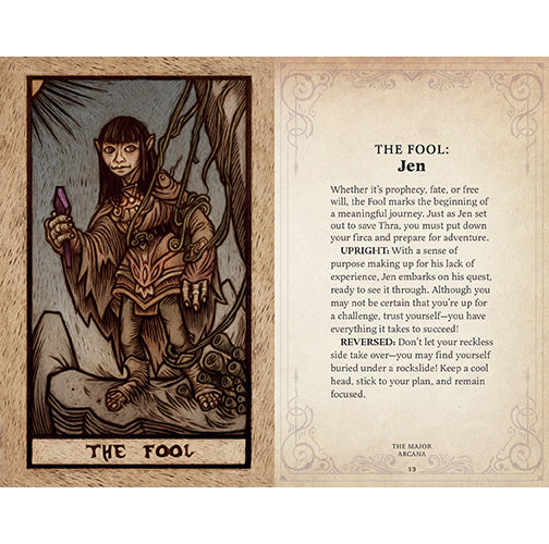 Įtraukite Thra pasaulį į savo taro praktiką su šia fantastine 78 kortų taro kaladės versija. Šioje nuostabioje kaladėje yra žavingos, visiškai naujos Jim’o Henson’o mylimų personažų ir būtybių iliustracijos, sukurtos pagal klasikinę taro ikonografiją. Rinkinyje yra didysis ir Mažasis arkanai, taip pat naudingas vadovas, kuriame paaiškinta kiekvienos kortos reikšmė, ir paprastos instrukcijos, kaip lengvai skaityti kortas. Ši taro kaladė supakuota į tvirtą dekoratyvinę dovanų dėžutę ir yra puiki dovana tiek “Tamsos kristalo” gerbėjams, tiek taro entuziastams.