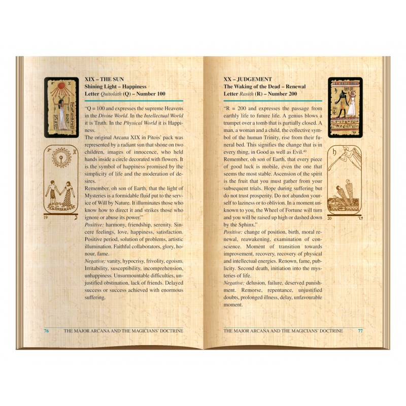 Šias korteles iš dalies paskatino 1870 m. žinomas okultūnas Jean-Baptiste Pitois sukurtas Tarotas. Pasak Pitoio, Tarotas kilęs iš legendinės Thoto knygos, žinomos knygos, kurioje laikomos visi Egipto paslaptingi kerai.
