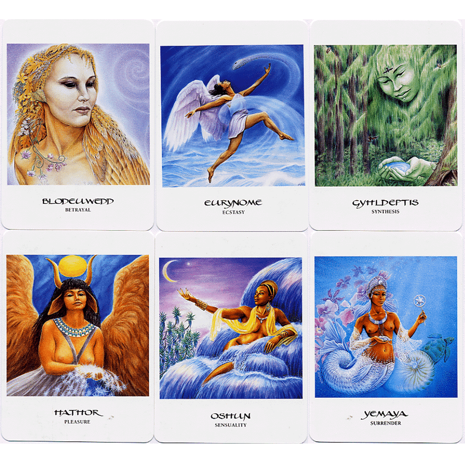Įkvepianti kaladė, nutapyta Hranto Janto, sudaro 52 kortelės, kiekviena iš jų yra skirtinga moteriškos išminties energija ar aspektas. 208 puslapių iliustruota knyga, kurią parašė Amy Sophia Marashinksy, alfabetine tvarka pateikia deivės. Kiekvienai deivei knygoje pateikiama originali poema, mitologinis pagrindas, kortelės reikšmė ir siūlomas ritualas. Knyga siūlo tris skirtingus kortelių pluoštus. “Goddess” “Oracle” gali padėti jums suprasti, kur esate, kuria linkme einate, ir ko jums reikia kelionei.