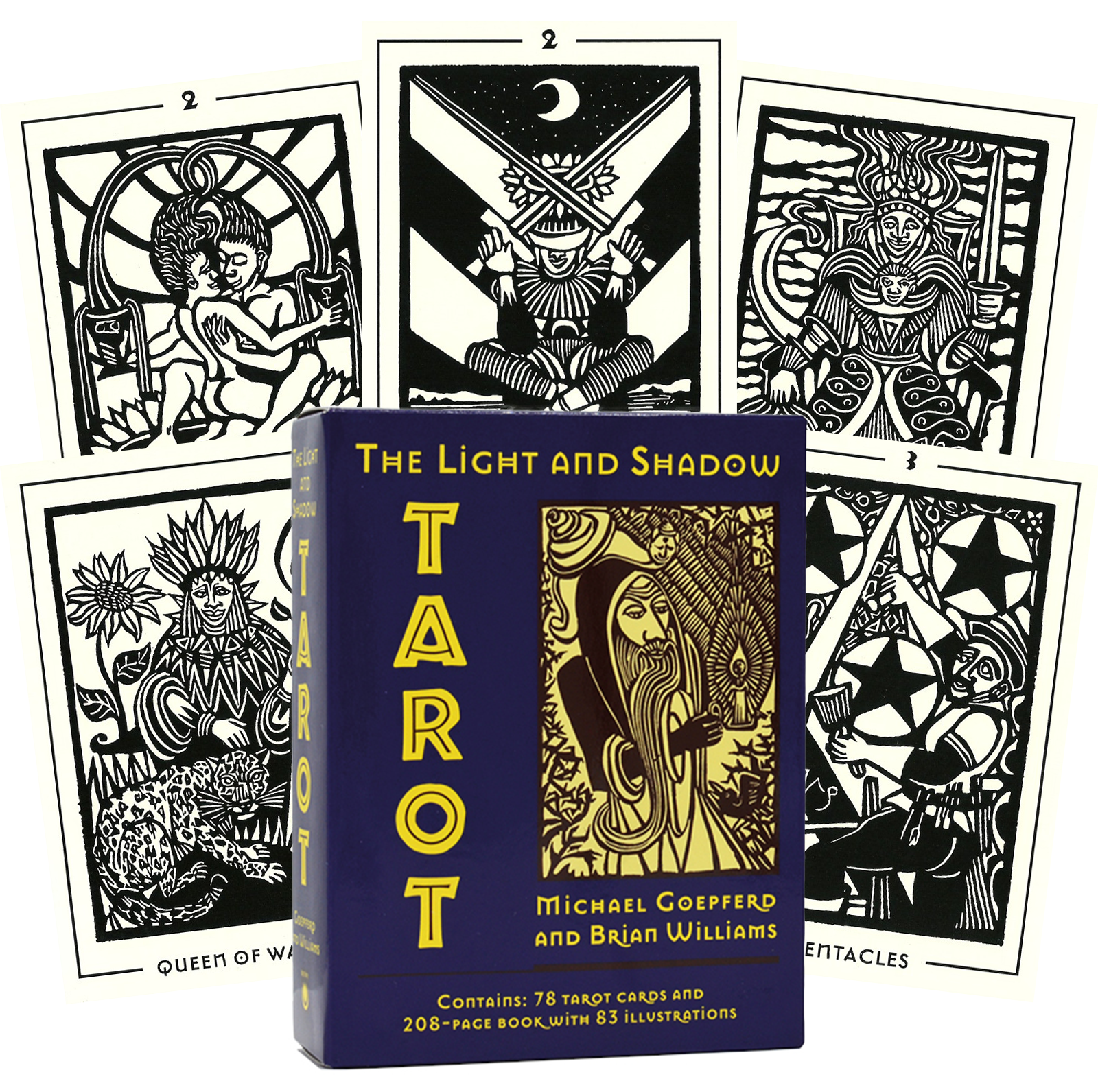 Kortų piešiniai įkvėpti daugelio dvasinių tradicijų, įskaitant keltų, indėnų, Rytų Indijos, Afrikos, viduramžių ir renesanso europiečių. „The Light And Shadow“ taro kortos yra novatoriškas stiprių vaizdų ir interpretacijų rinkinys. Įspūdingi juodai balti vaizdai pabrėžia kontrastą ir balansą, skiriamąją gebą ir užbaigtumą, išlikdami tvirtu ir veiksmingu tradicinio Taro analogu. Ši kaladė išryškina mūsų visų šešėlinę pusę – esminę kūrybinio proceso dalį, vedančią į augimą, judėjimą ir pokyčius.
