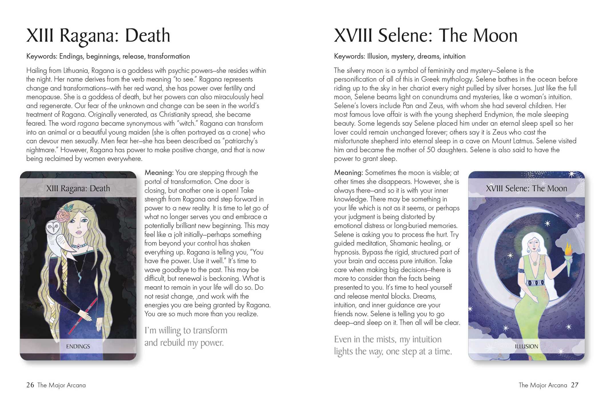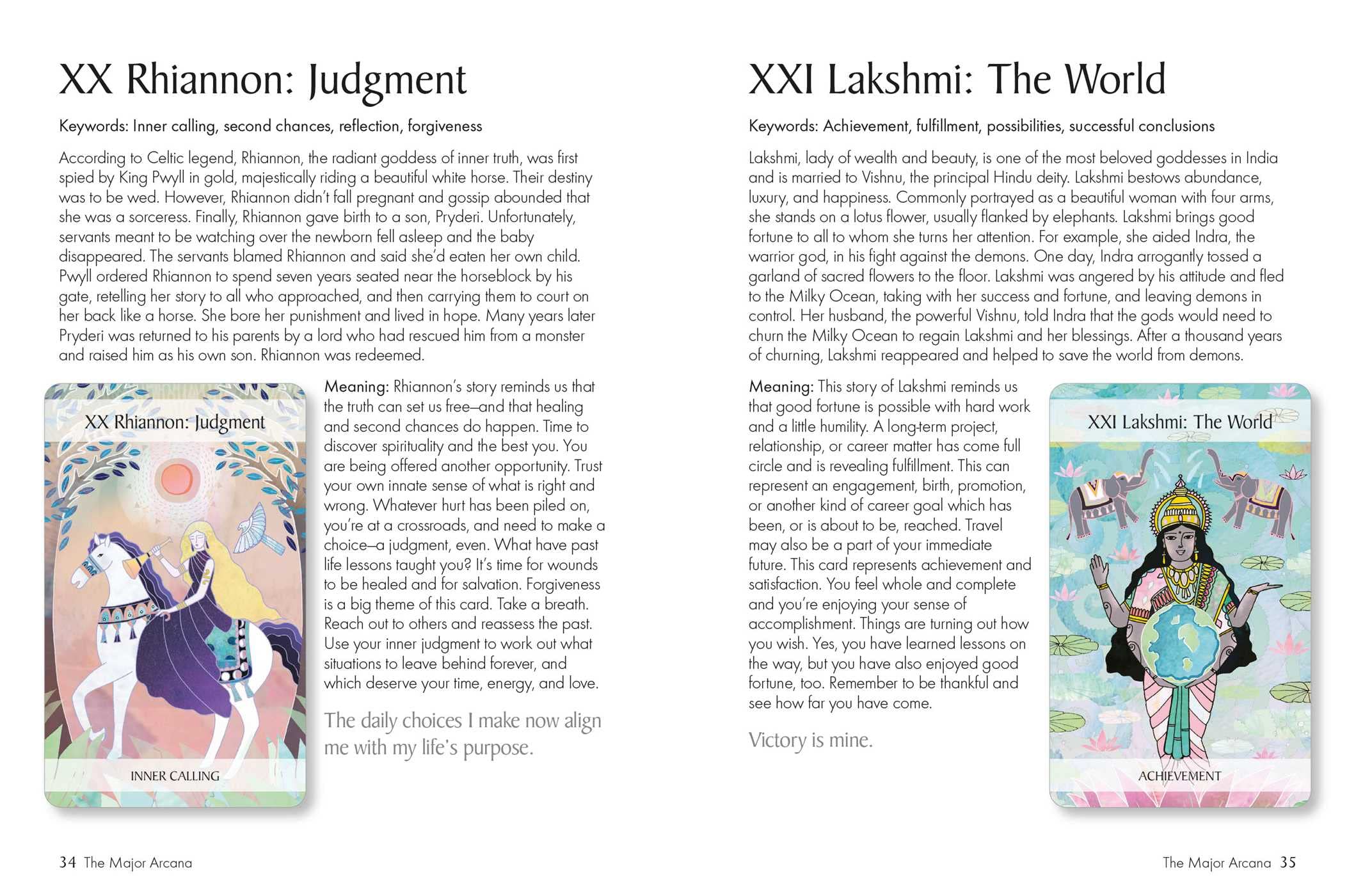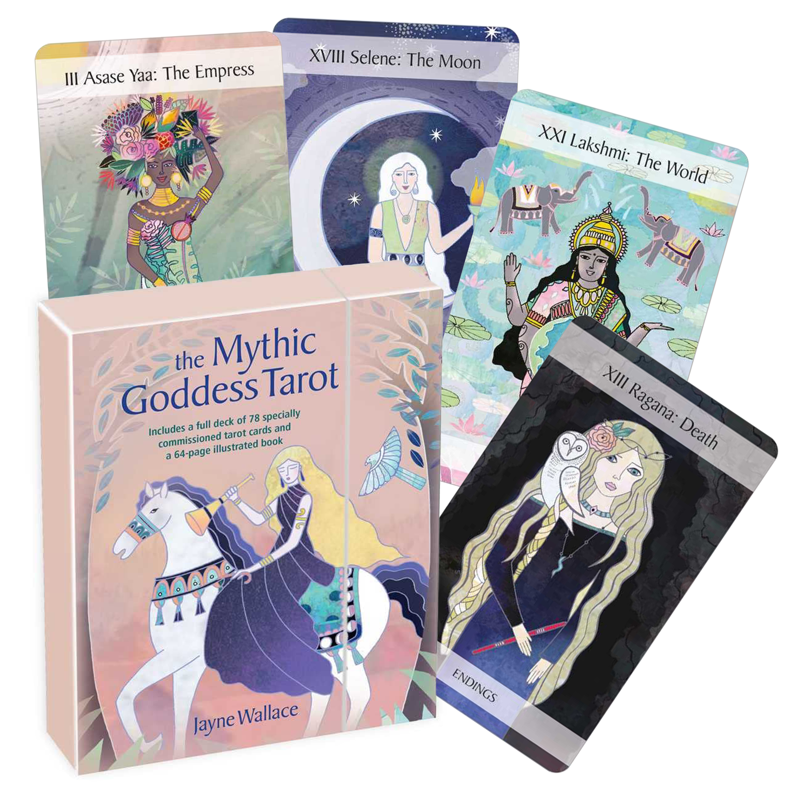 Pasinaudokite dvasiniu ir pirminiu žmonijos vidiniu žinojimu su “The Mythic Goddess Tarot” – nuostabia 78 kortų kalade, kurią įkvėpė labiausiai gerbiamos dangaus būtybės. Su šia nuostabia taro kalade ir knyga The Mythic Goddess Tarot (Mitinių deivių taro) galite nukreipti deivių armijos galią tiesiog pasirinkdami kortą. Šios nuostabios kortos apima tokias skirtingas dievybes kaip Lakšmi, gausos dama, kuri atstovauja Pasauliui, iki Afrikos žemės motinos Asase Yaa, kuri tampa Imperatoriene. Gerai žinomos Romos ir Graikijos dievybės, tokios kaip Junona ir Selenė, yra greta dieviškų būtybių iš kitų tradicijų, tokių kaip Lakšmi, hinduizmo sėkmės deivė. Deivių galios derinimas su taro yra įtikinamas ir veiksmingas būdas pasiekti problemos esmę, nes ryšys su šventuoju moteriškumu sustiprina dvasinę intuiciją. Pridedamoje iliustruotoje knygoje rasite įvairias kortų sklaidas skaitymams, taip pat išsamią informaciją apie kiekvieną kortą, įskaitant raktinius žodžius, mantrą ir deivės istoriją.