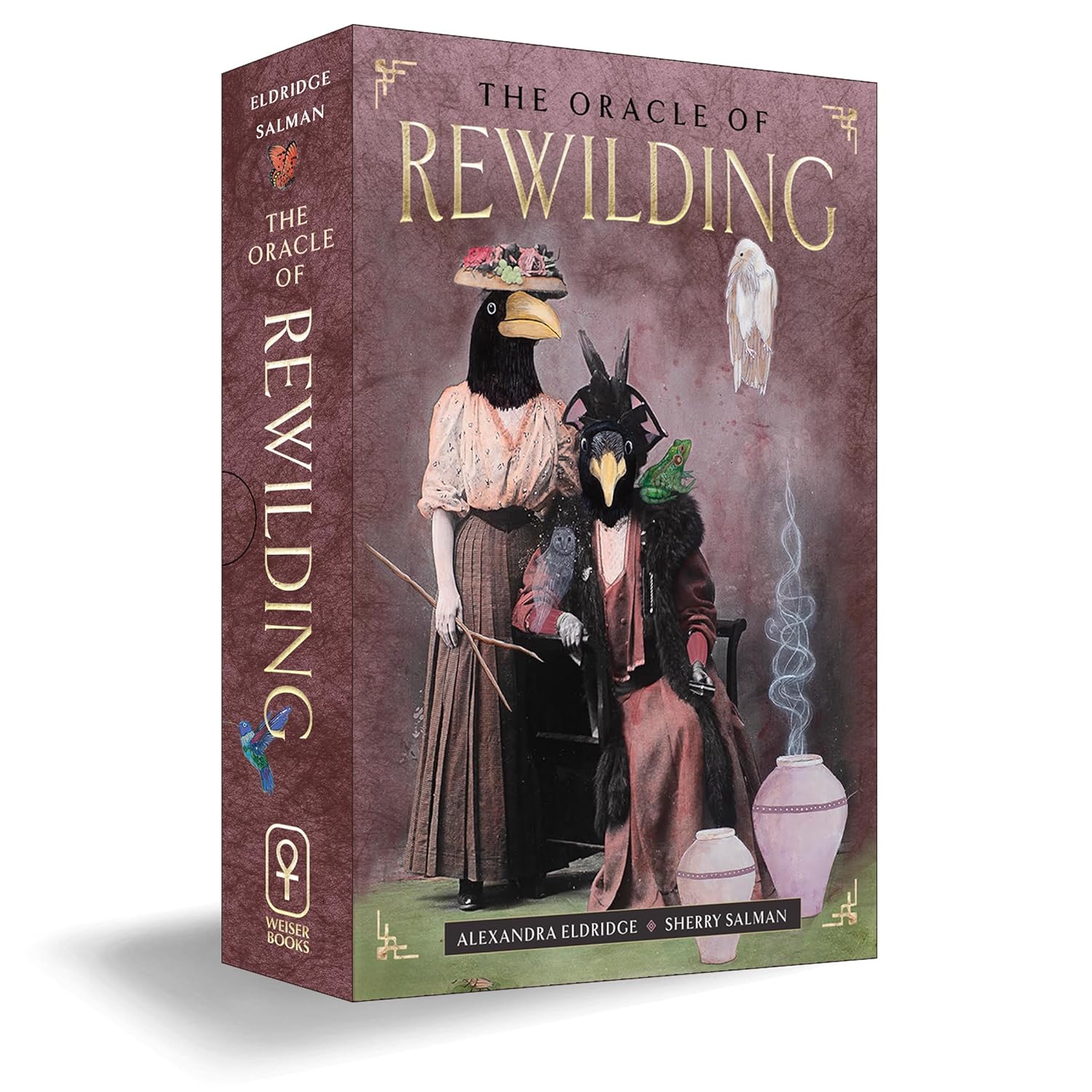 Sveiki atvykę į pasaulį, kuriame žmonės ir gyvūnai gyvena vienas kito gyvenimuose, siurrealiose, sapniškose vaizduotės erdvėse. Vaizdai The Oracle of Rewilding kortose yra dalis senovinės, primityvios istorijos apie gilų giminystės ryšį, intymiai siejantį žmonių ir gyvūnų pasaulius. Ši orakulo kortų kaladė ir vadovas kviečia mus atnešti gijimą laikais, kai žmonių ir kitų žemiškų kūrinių likimas yra grėsmėje. Orakulas švelniai veda mus sąmoningai puoselėti vizionierišką santykį su pasauliu – giminystę su viskuo, kas gyva. Turime „atgaminti laukinę prigimtį“ savyje, kad išsaugotume viską. Įsivaizduojami, neįprasti, net keisti žmogaus ir gyvūno hibridai šioje kaladėje simbolizuoja Apgaviką (Trickster) chaosų ir sutrikimų metu, ir kalba apie būties vienybę bei viltį.
