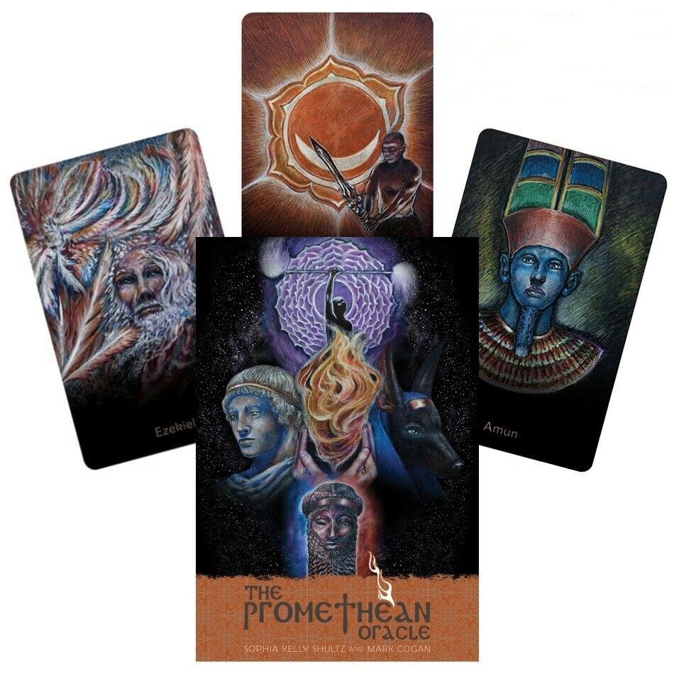 The Promethean Oracle – šios kortos suvienija vyrišką energiją su čakrų energija, kad būtų sukurtas unikalus ir naujas požiūris į asmeninį pažinimą. Jums vadovaus tokie kariai kaip Odisėjas, gudrūs karaliai, kaip Hammurabi, tylūs pranašai, tokie kaip Elijas, ir monstrai, tokie kaip Pazuzu. Visi šie personažai yra stiprios intuityvios išminties, kurią galima pritaikyti ir jūsų gerovei bei gyvenimo problemoms spręsti. Kortelės suteiks žinių ir atnaujins Jūsų sielą.
