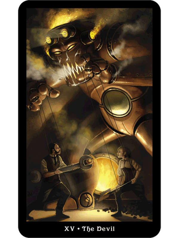 Sukurta apdovanojimų pelniusio tarot eksperto Barbaros Moore ir puikiai atkurta menininkės Aly Fell, The Steampunk Tarot kaladė siūlo žvilgsnį į ateitį per praeities objektyvą. Atstatant Rider-Waite tradicijos įrankius, kiekvieno kortelės sudėtinguose meno kūriniuose vaizduojamas spindintis žmogus ir mašina, gamta ir technologija, mokslas ir alchemija, romantika ir mada. Įtrauktas instrukcijas siūlo patarimai, originalūs platinimai ir kortelių interpretavimo rekomendacijos.