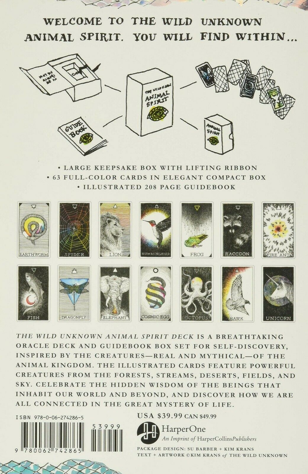 Rankomis piešta Kranso detaliu ir emociškai paveikiu stiliumi, “The Wild Unknown Animal Spirit” kaladė ir vadovas yra meno kūrinys, kuriame atskleidžiamos gamtos pasaulio ir gyvūnų karalystės paslaptys. Galingi Kranso gyvūnų archetipai leidžia suprasti santykius, asmenybes, elgseną ir polinkius ir gali būti naudojami atskirai arba kartu su “The Wild Unknown Tarot”, kad skaitymai būtų dar gilesni. Ranka rašytame, išsamiai iliustruotame vadove pateikiami pagrįsti, lengvai suprantami kortų paaiškinimai, išsamiai apžvelgiama daugybė skleidimų, praktikų ir koncepcijų, kuriomis paremta Gyvūnų dvasios kaladė, ir giliai suvokiama, kaip kiekvienas gyvūnas padeda atskleisti mūsų prieštaravimus, sudėtingą prigimtį ir begalinę paslaptį, kas mes esame. The Wild Unknown Animal Spirit kaladė ir vadovas šlovina paslėptą mūsų pasaulyje ir už jo ribų gyvenančių būtybių išmintį ir atskleidžia, kaip mes visi esame susiję sudėtingame ir nuostabiame gyvybės tinkle.
