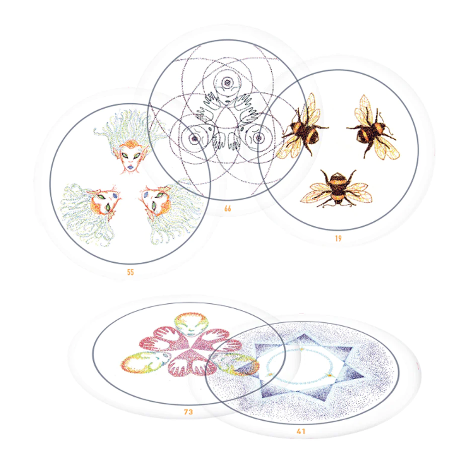 Šiaurė, pietūs, rytai, vakarai, viršus, apačia ir vidus… nesvarbu, kurioje pasaulio vietoje būtume, mes visi esame mūsų suvokiamos visatos centras. Būtent šių septynių krypčių stichinės jėgos susijungia, kad galėtumėte jomis naudotis burdami, medituodami ir pasakodami istorijas su šiuo pataisytu “Transparent” orakulo leidimu. Į 77 kortų apskritą kaladę įtrauktos septynios naujos archetipų kortos, suteikiančios papildomo aiškumo skaitymams apie santykius su aplinkiniais žmonėmis ir mūsų asmenybės aspektus. Sluoksniuotos šios permatomos kortos sukuria mandalą primenantį vaizdą, rodantį mus veikiančias įtakas ir padedantį susivokti tariamame gyvenimo chaose. Vadove pateikiamos užuominos ir atspirties taškai, padedantys lengviau orientuotis raktiniuose žodžiuose ir kortų reikšmėse, taip pat trys autoriaus ir ezoterikos tyrinėtojo Davido Rankine’o parengtos išskleidimai. Besisukantis kortų aspektas atveria dar daugiau skaitymo galimybių, prireikus suteikia patarimų, paramos ir įkvėpimo.